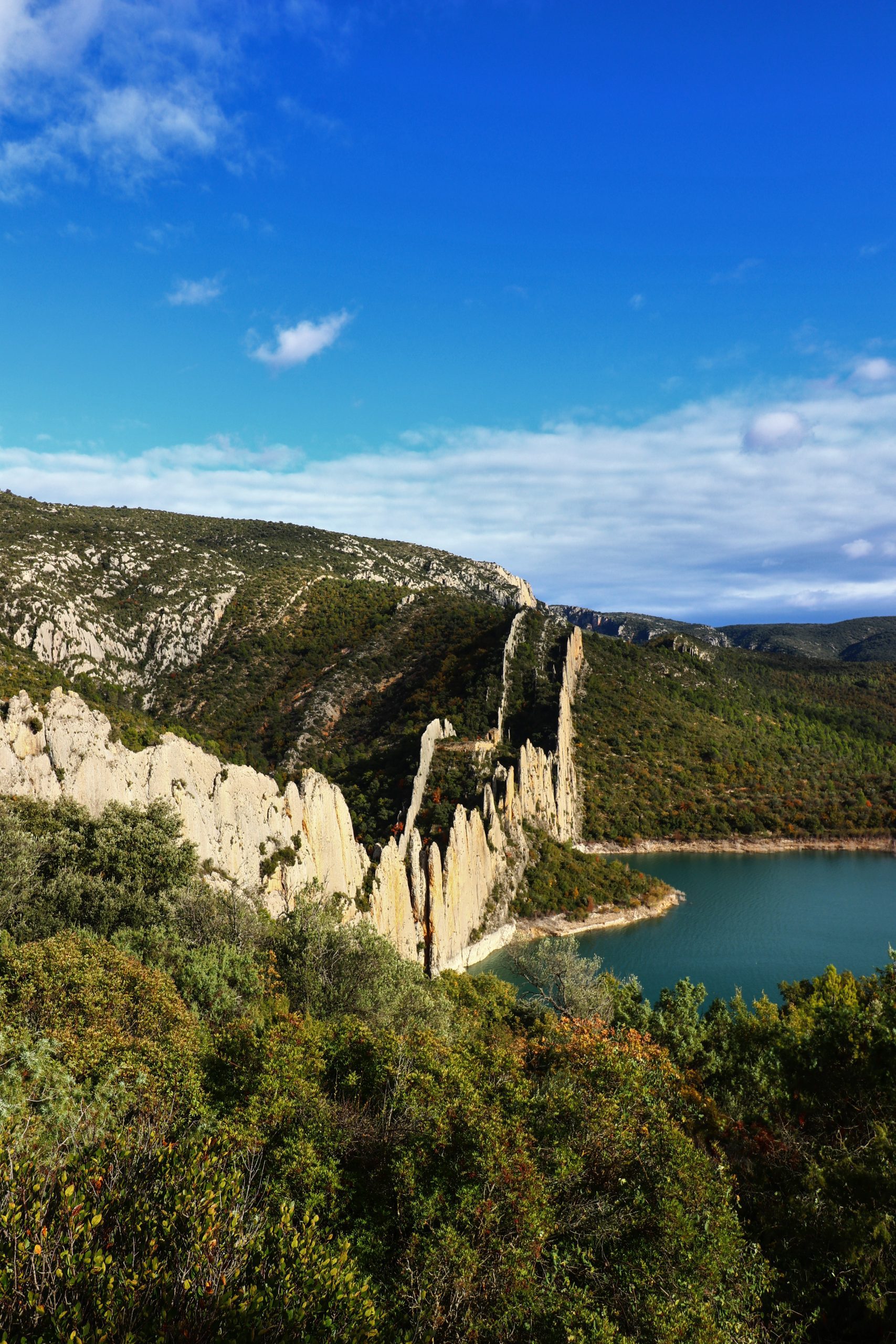 Arrivé à l’ermitage, la nature nous dévoile un de ces plus beaux secret, les finestras, une muraille de roche embellie par le lac artificiel.