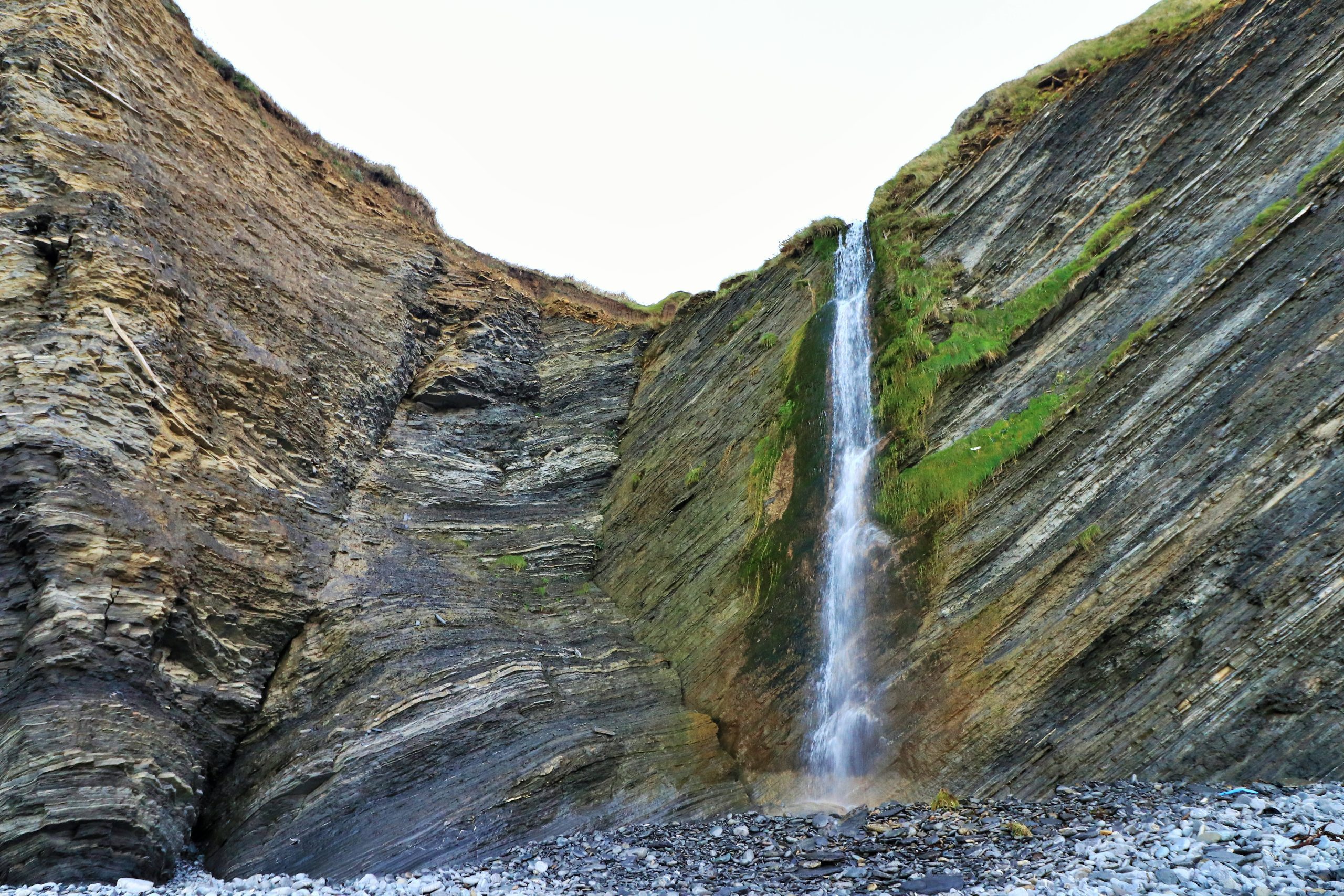 D’en bas le paysage est surprenant et prend un air de Grande Bretagne avec ces sombres falaises qui surplombent la cote.