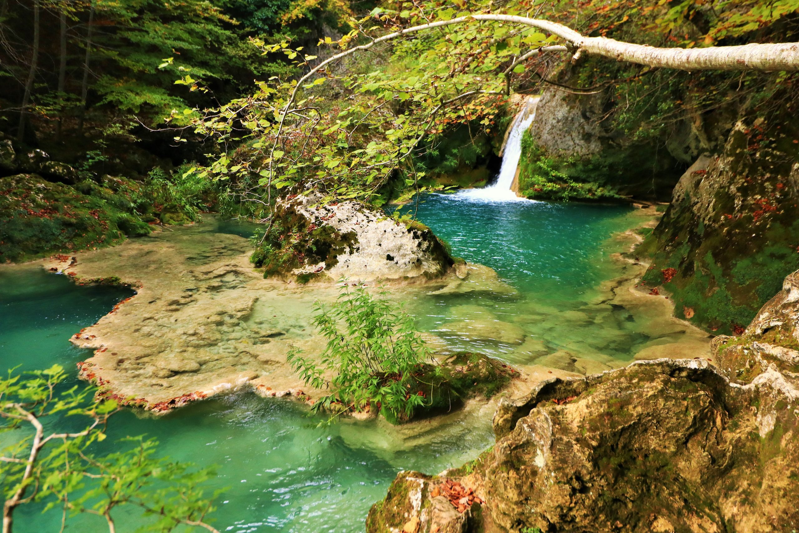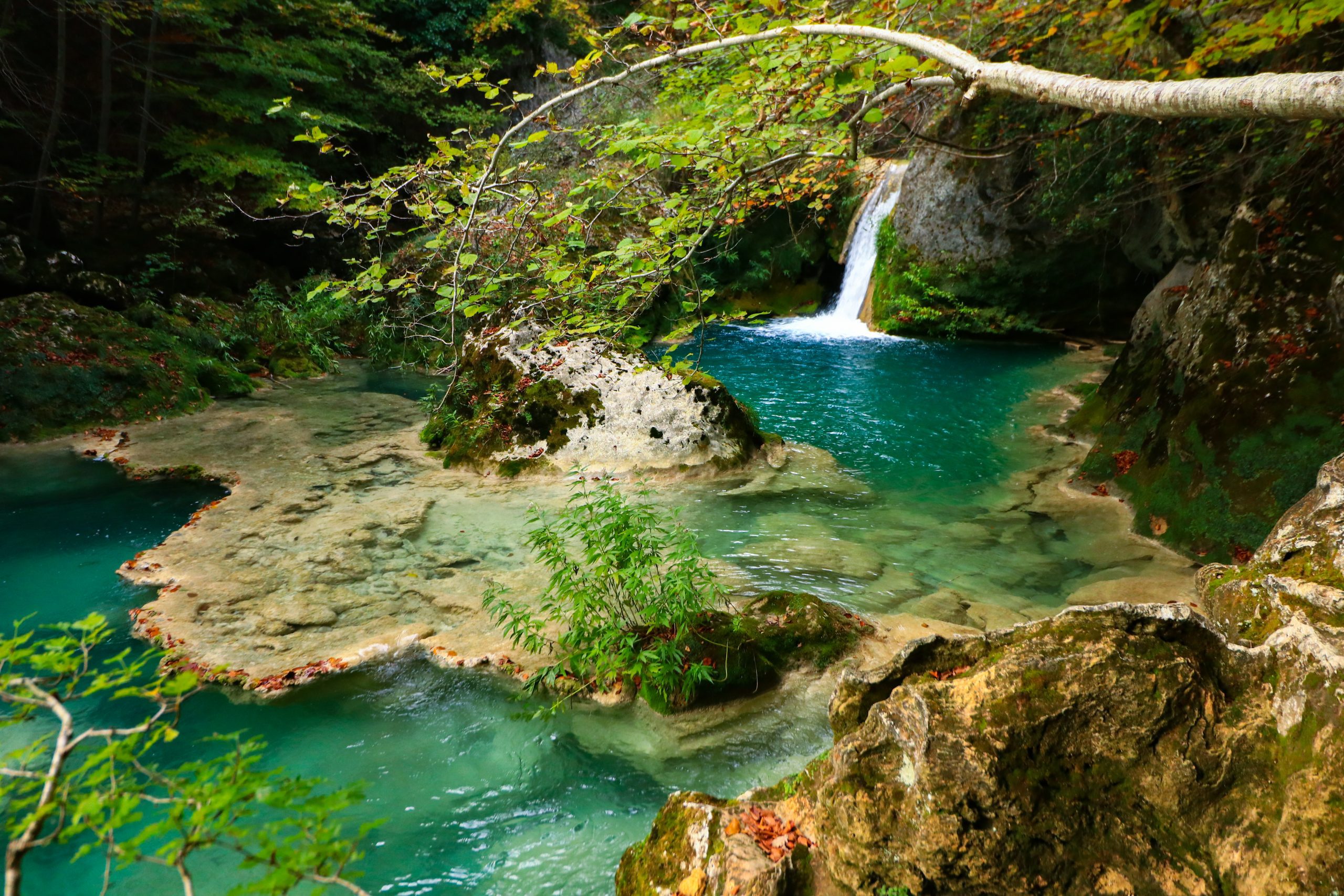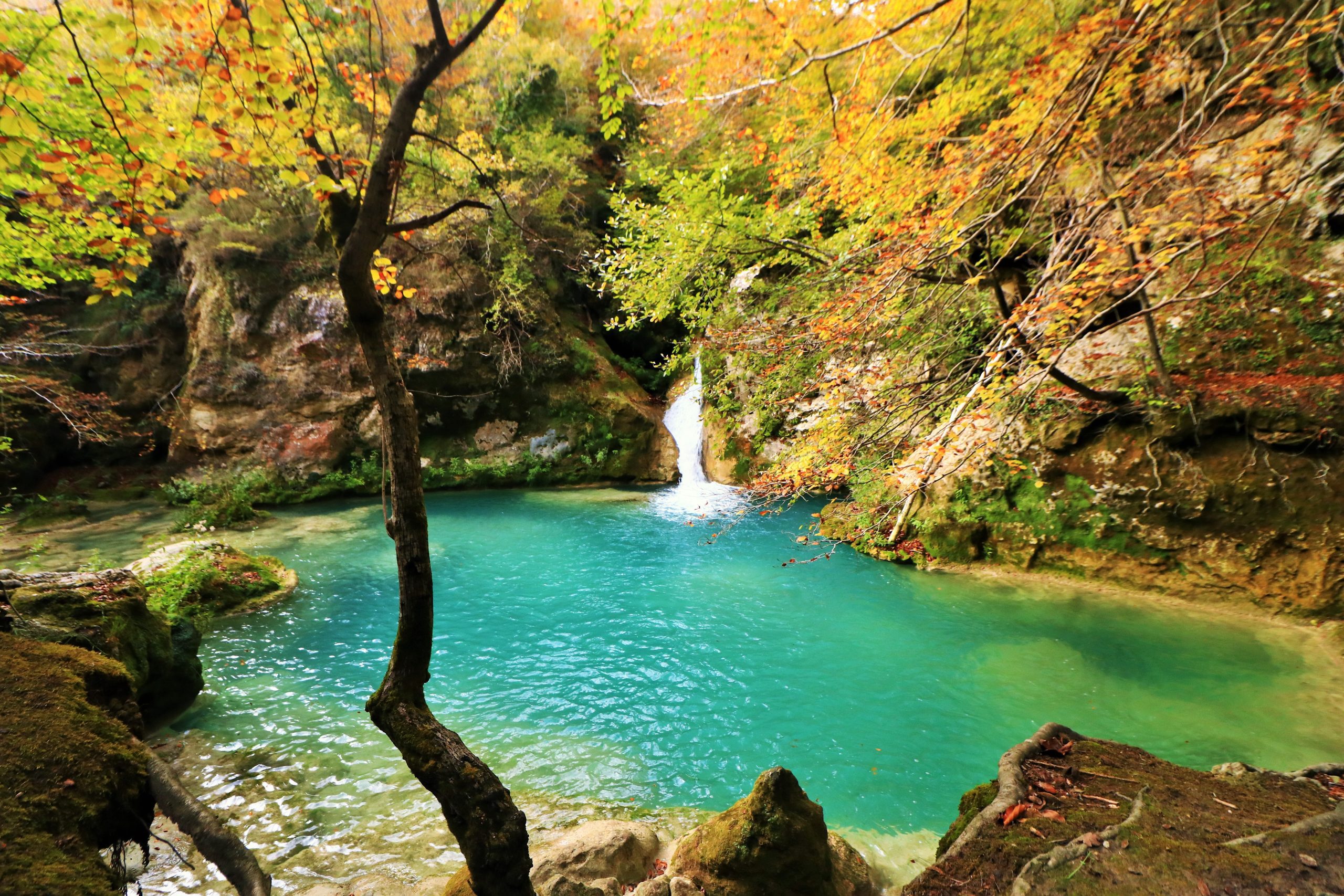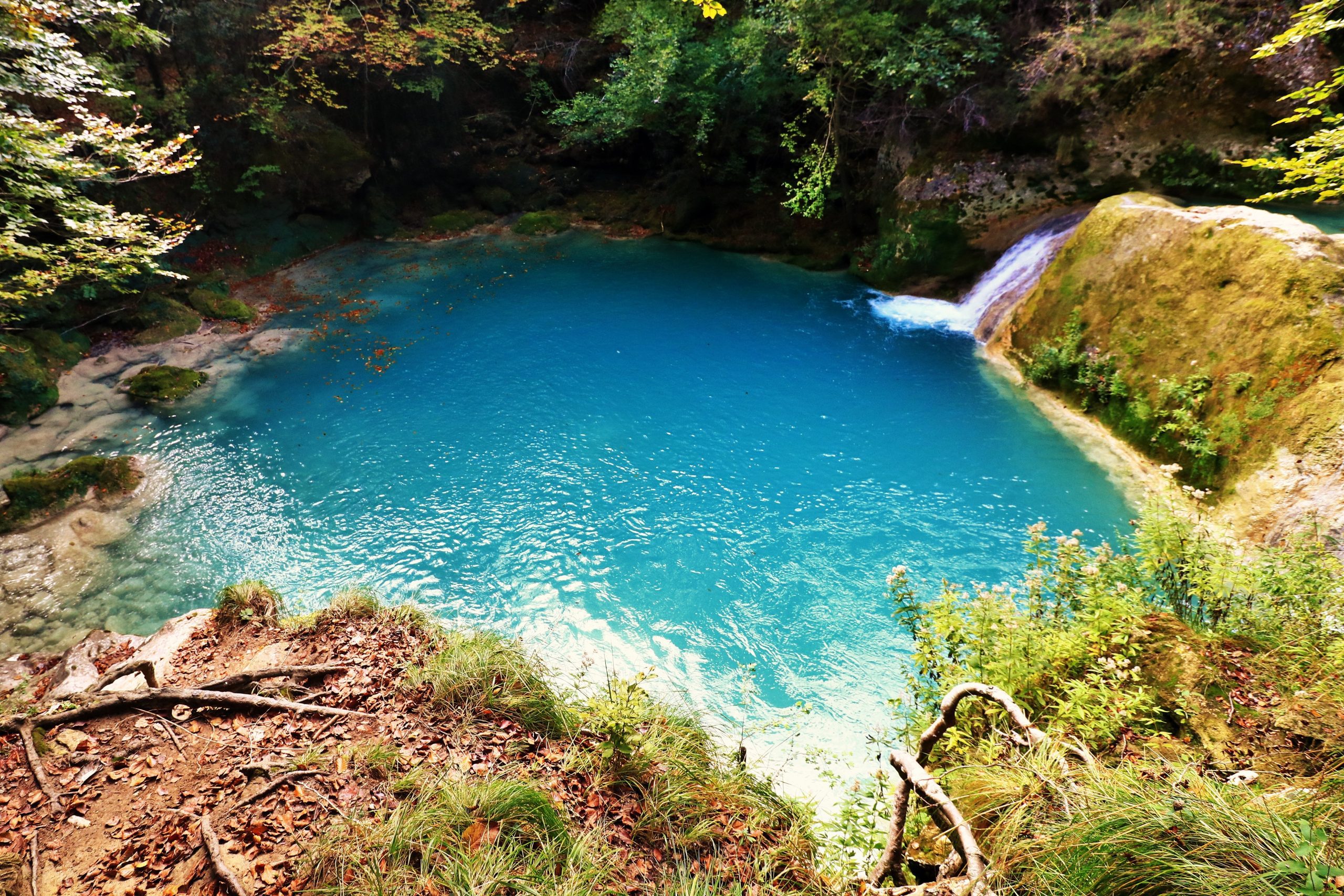 Après la vue dégagée sur l’horizon, on gagne maintenant un cirque rocheux où se cache la source d’Urederra. L’eau y est d’un bleu incroyable et le sentier est sympathique.