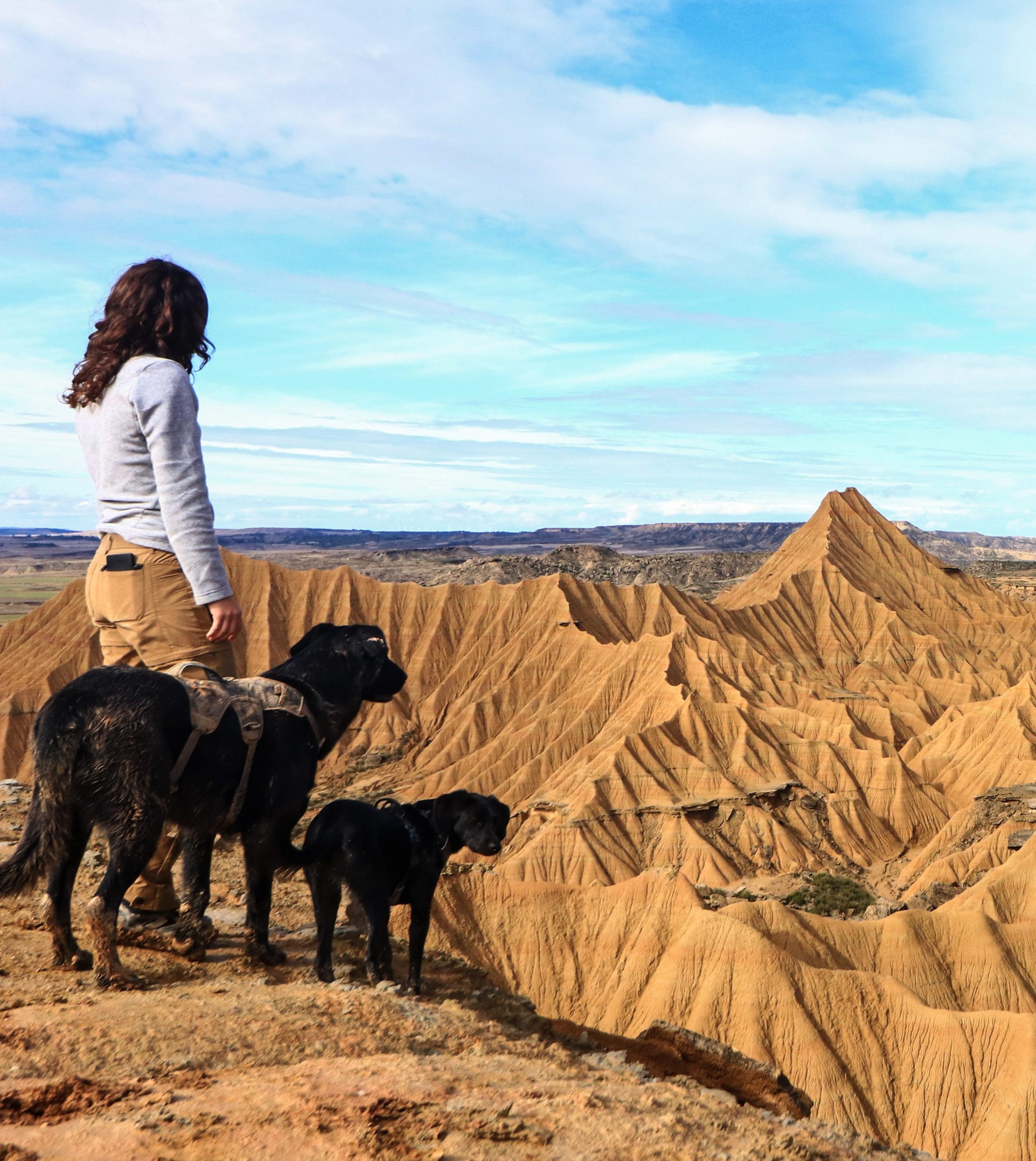 La base militaire n’est pas loin et les Bardenas sont un terrain de manoeuvre… Aujourd’hui les avions de chasses ne cessent de passer au dessus de nos têtes au grand désespoir de Lucky qui en a peur. Il faut dire qu’ils volent vraiment à basse altitude !
