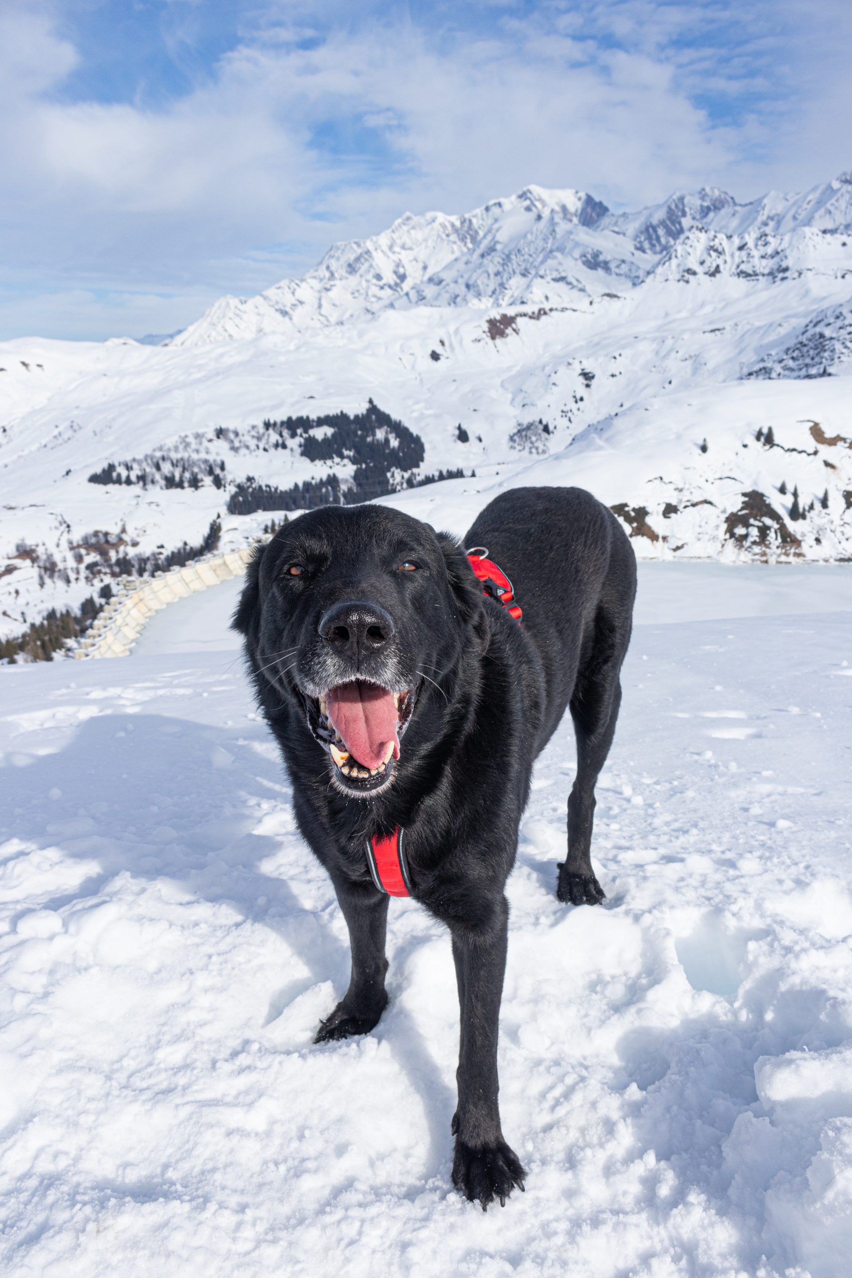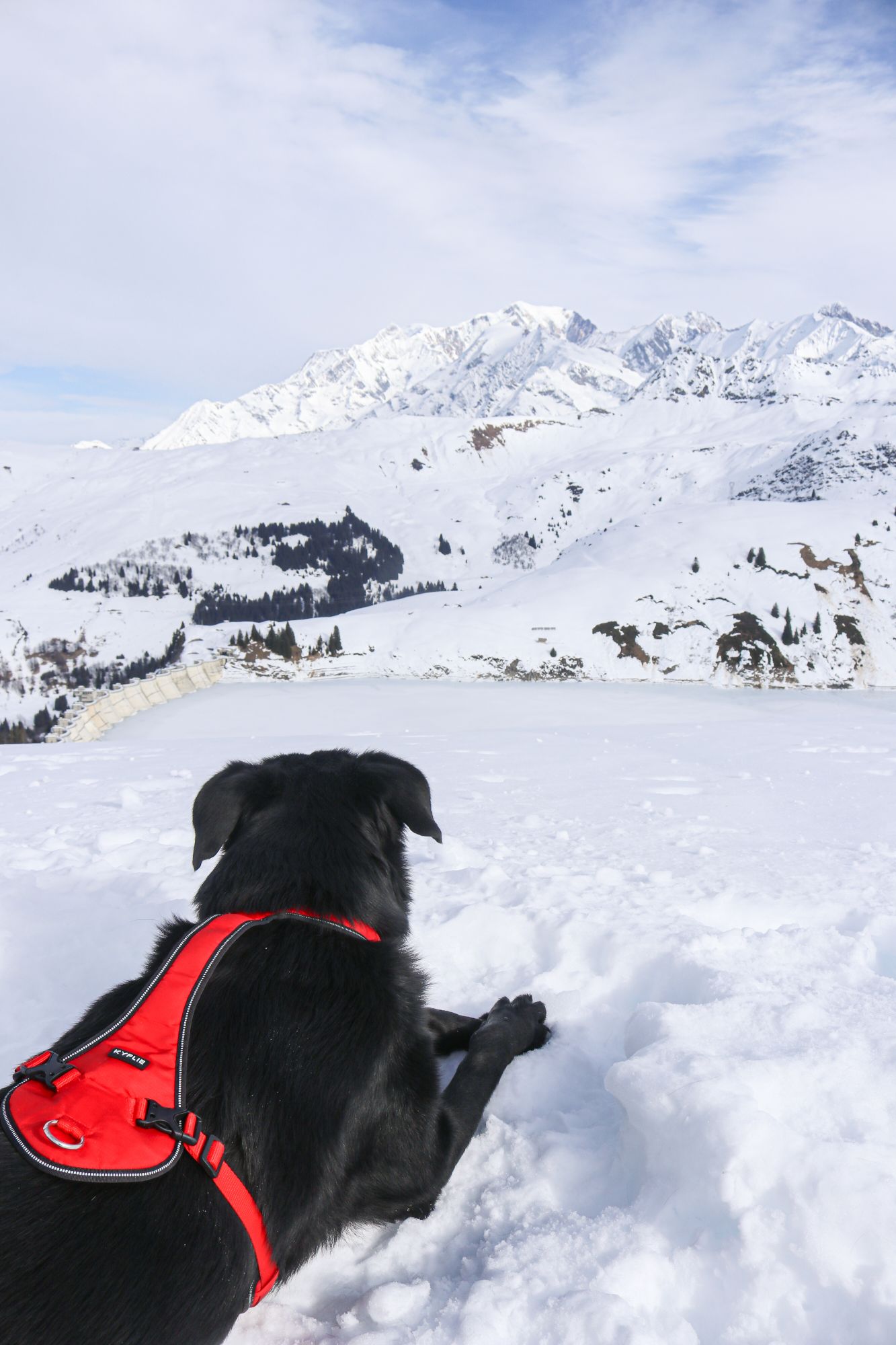 On s’arrête pour profiter de la vue sur le lac de la Girotte (encore gelé) et le Mont Blanc en arrière plan.