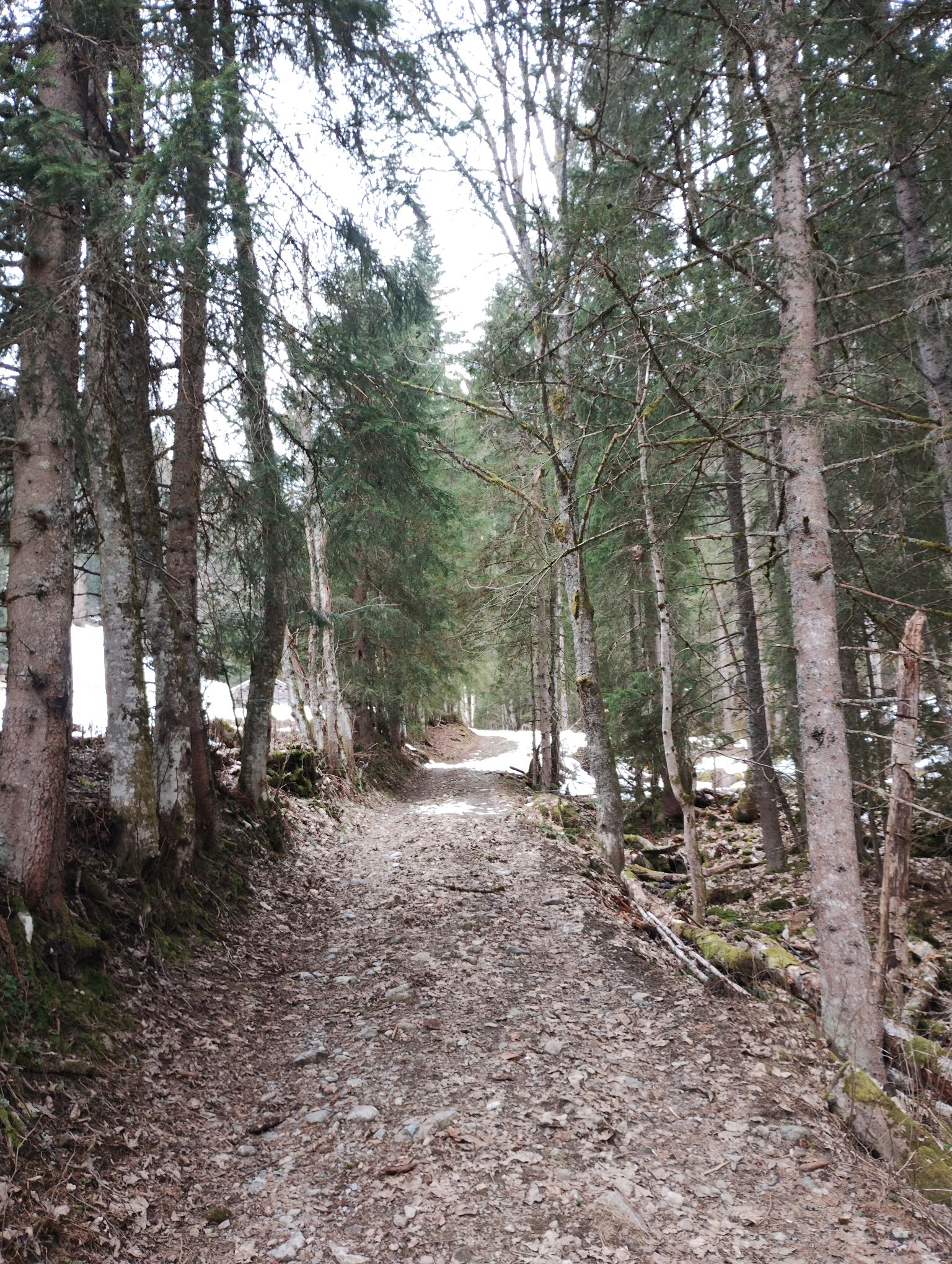 Passé le dernier chalet, ça devint plus sauvages, les raquettes deviennent nécessaires.