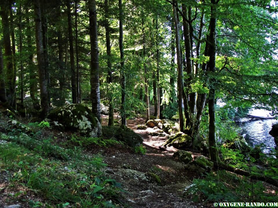 En poursuivant sur le balisage on arrive peu après sur les bords du lac d’Ilay.