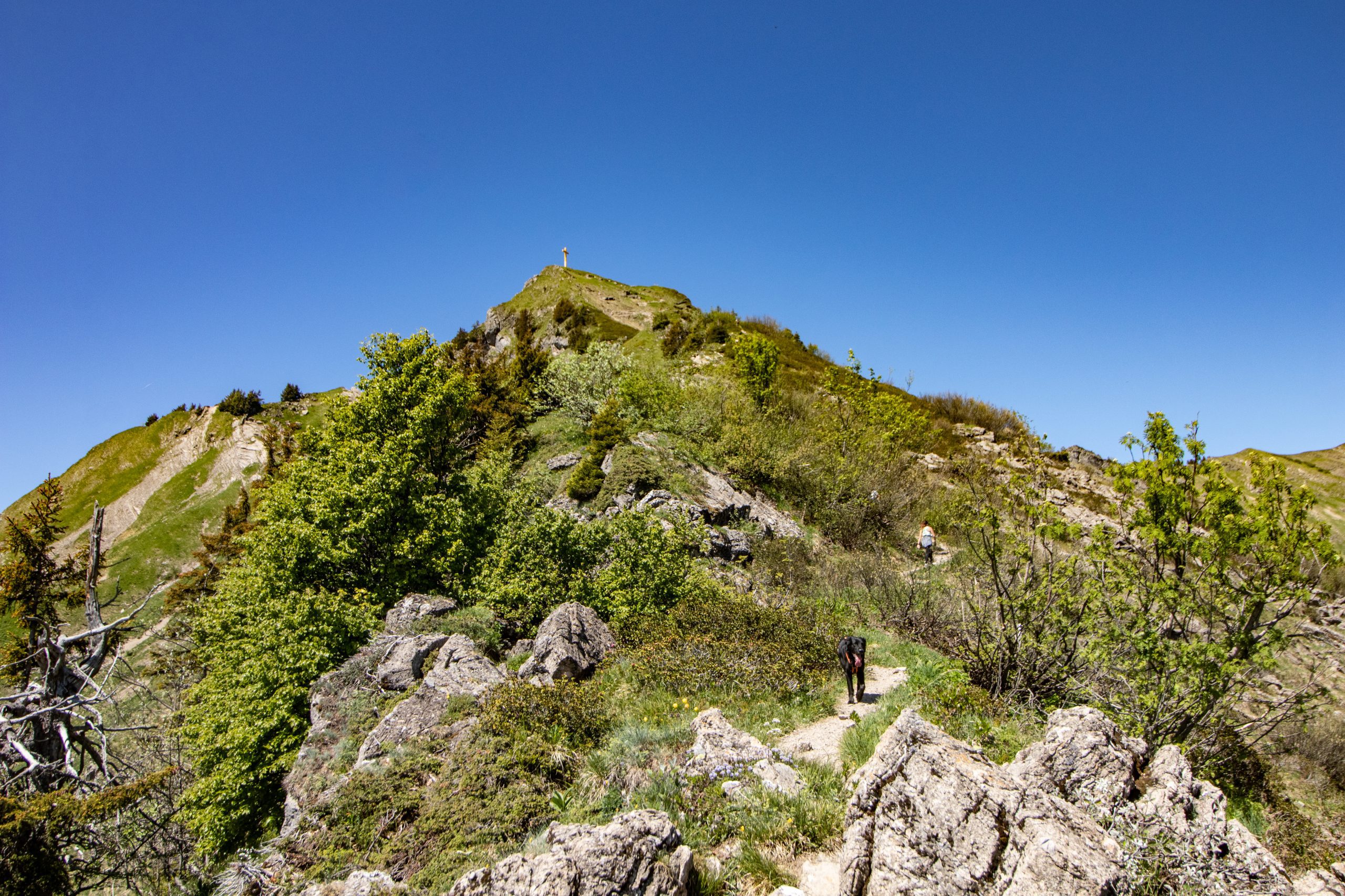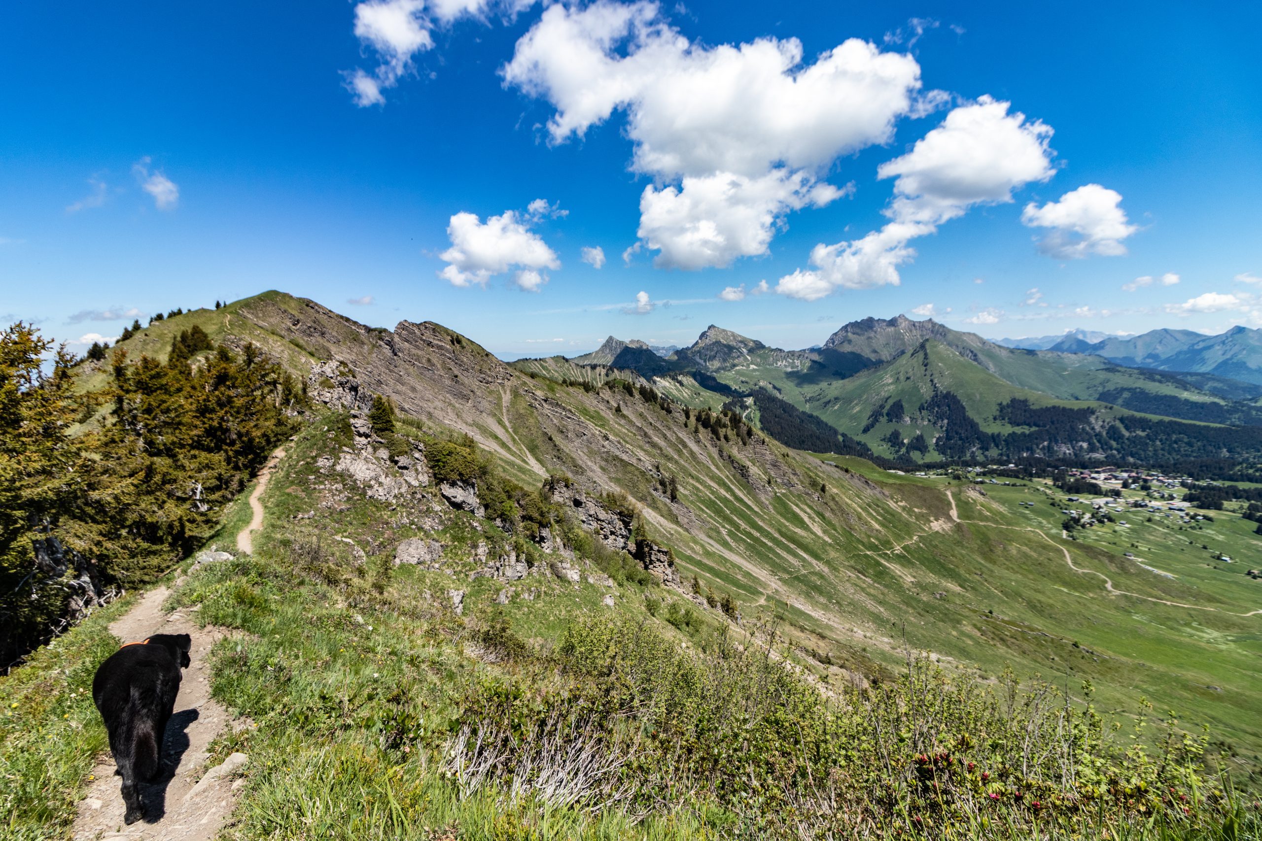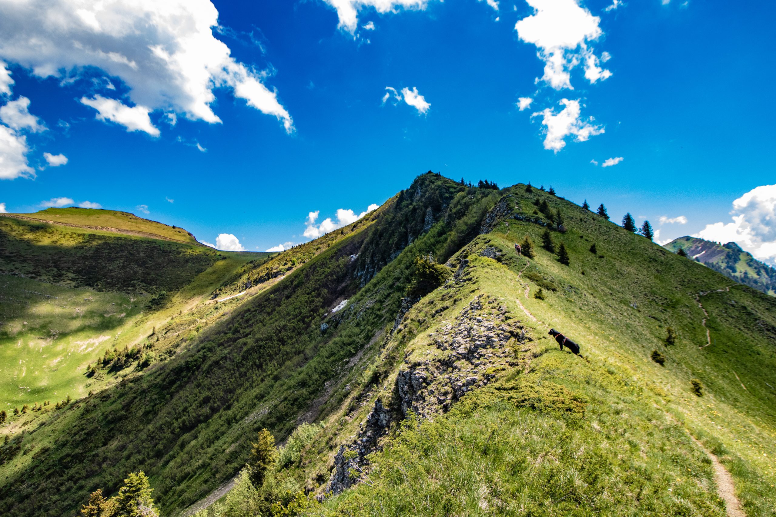 On longe les crêtes, enfin ça c’est ce qui était prévu mais on a dû revenir un peu sur nos pas pour contourner le pas et la Brêche de l’Ane (un passage câblé trop raide pour le chien).