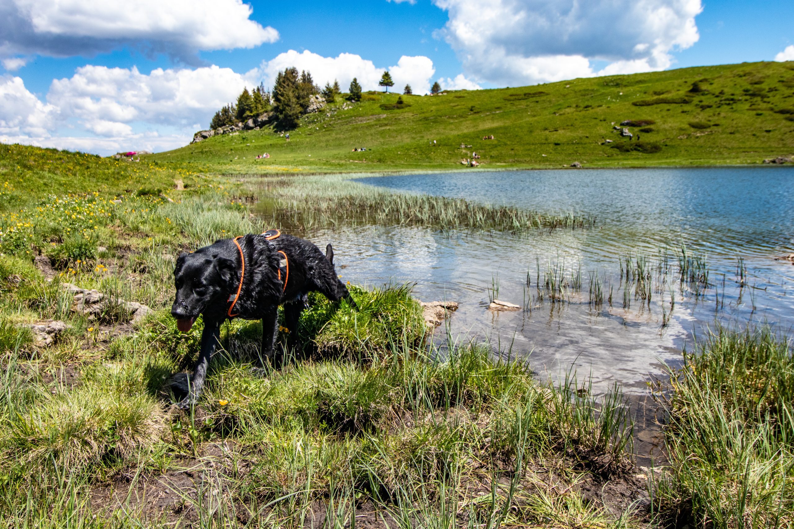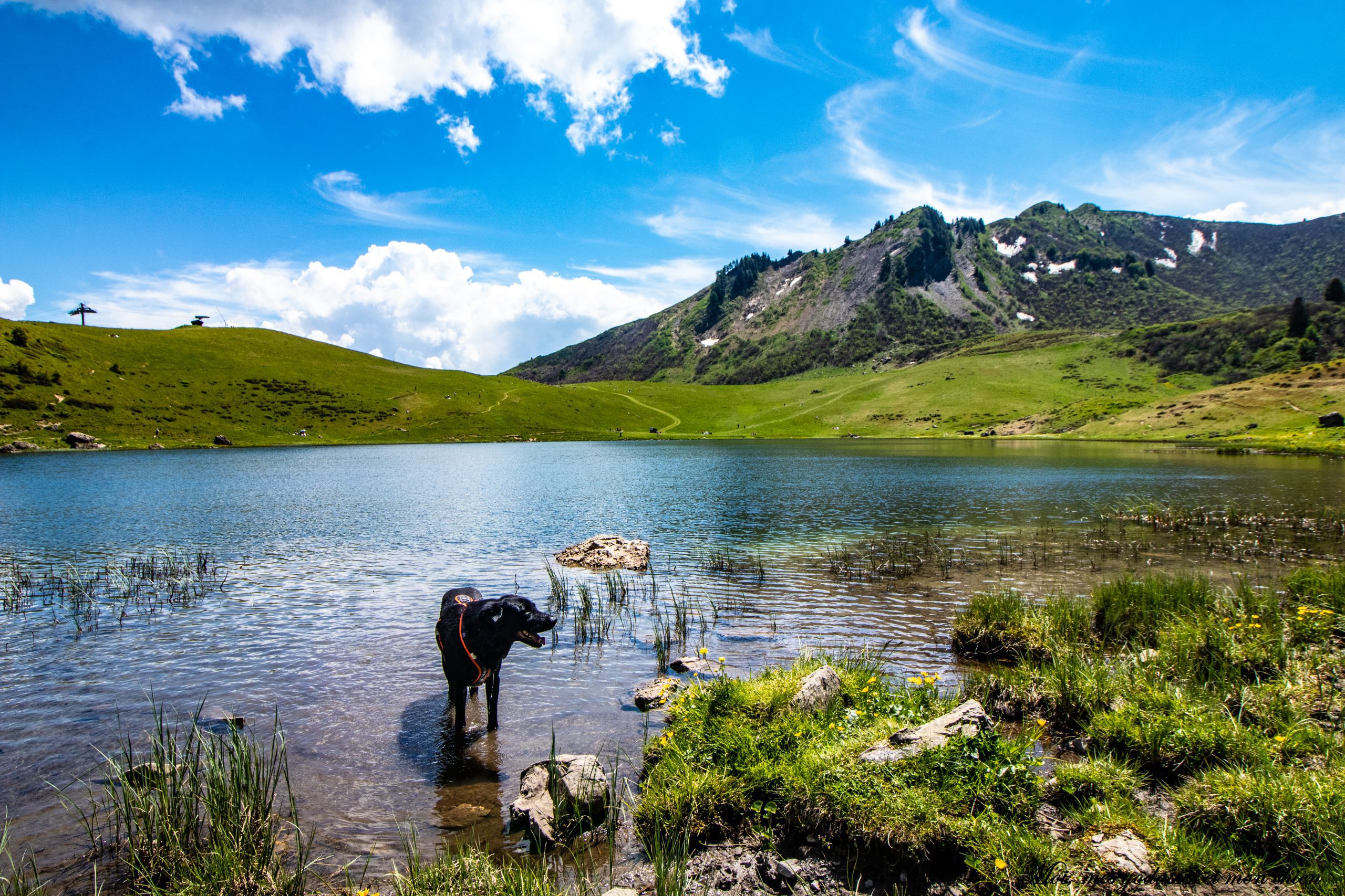 En arrivant vers le lac, Iron va vite à l’eau. Un chien nous arrive dessus, je me demande à qui il est car je ne vois personne le rappeler. Me voilà à pester, ils ont eux de la chance car d’habitude Iron ne supporte pas les approches aussi brusques mais depuis le déconfinement il est plutôt cool.