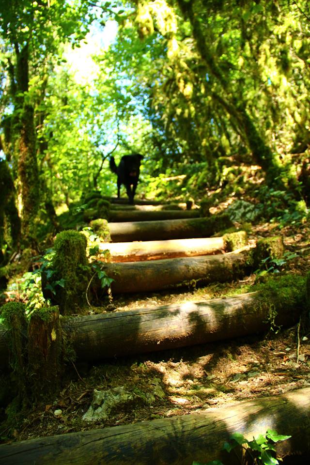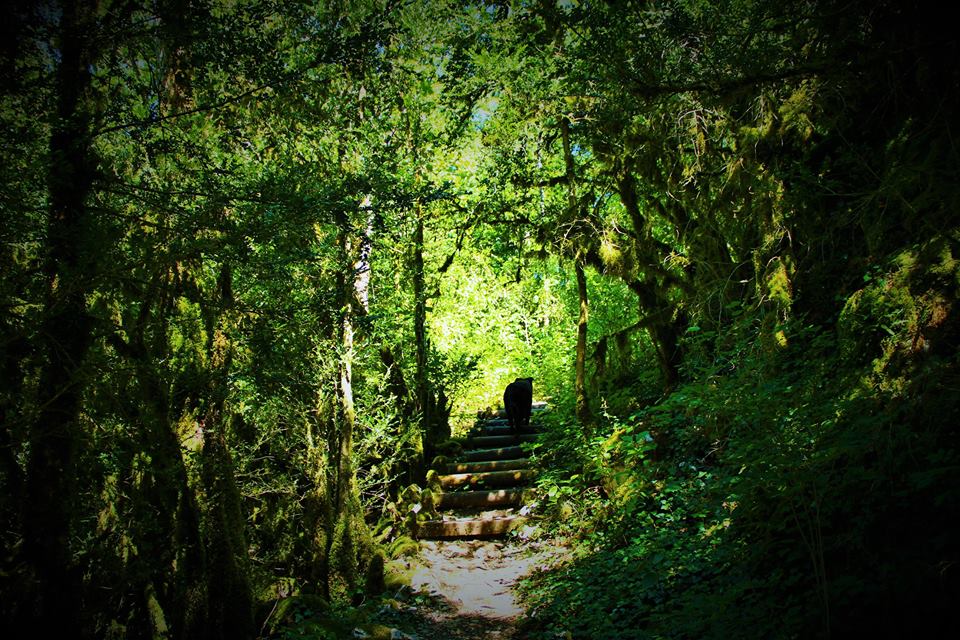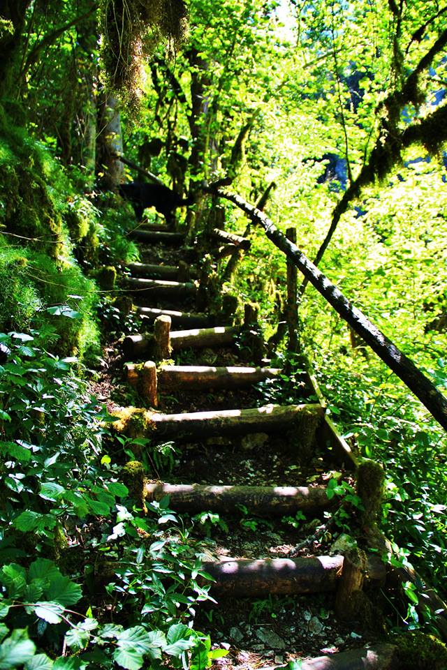 Continuer en suivant toujours le balisage jaune, dans un 1er temps il mène au dessus de la cascade par des escaliers aménagés mais qui sont très glissants.