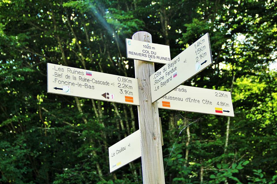 Direction le belvédère de la Roche fendue (que j’ai raté) puis le belvédère du Caillou (aller/retour) et la Bief de la Ruine-Cascade (en aller/retour), nous ne sommes pas allés jusqu’à la cascade ce jour là puisqu’il n’y avait pas d’eau.