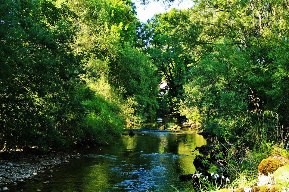 Regagner Foncine le haut, vers la gendarmerie il faut traverser la grande route pour prendre le chemin du parcours sportif qui longe la Saine. Il y a un petit pont pour les piétons qui permet de regagner le parking.