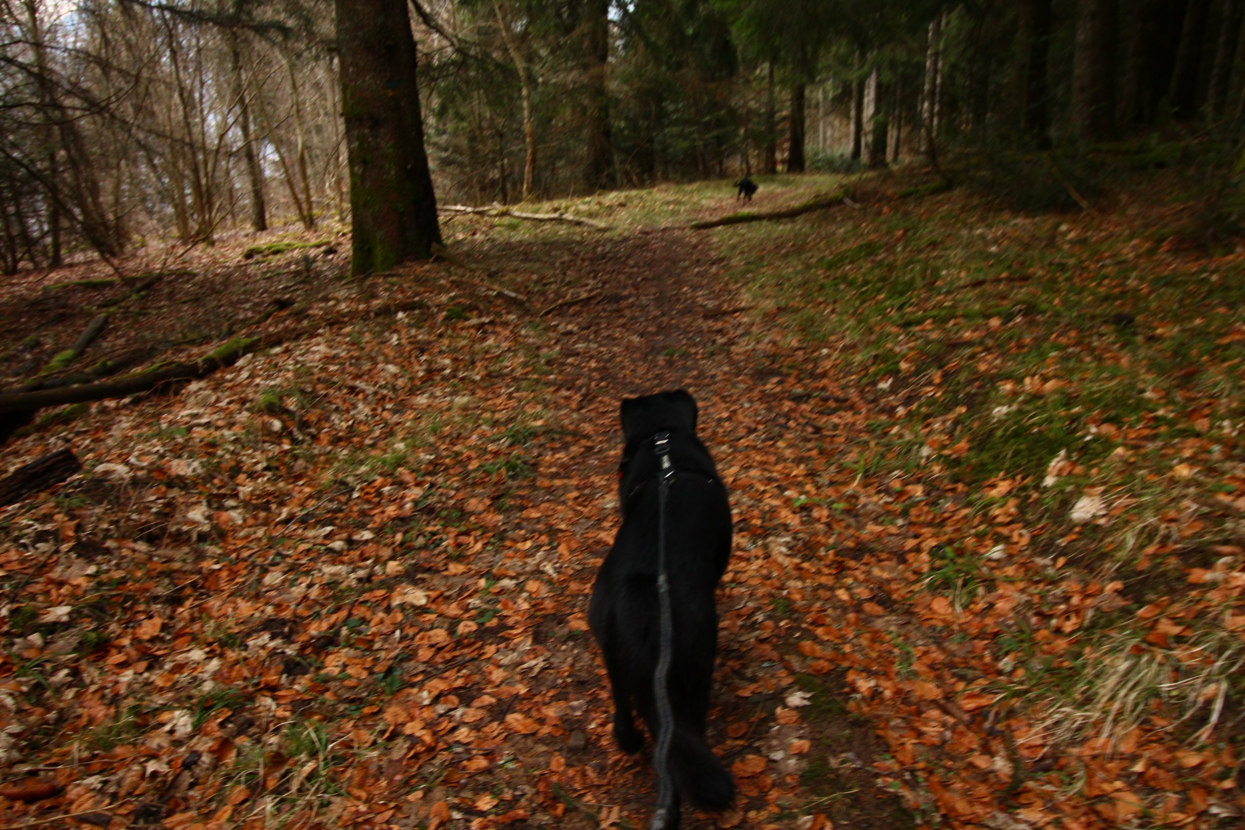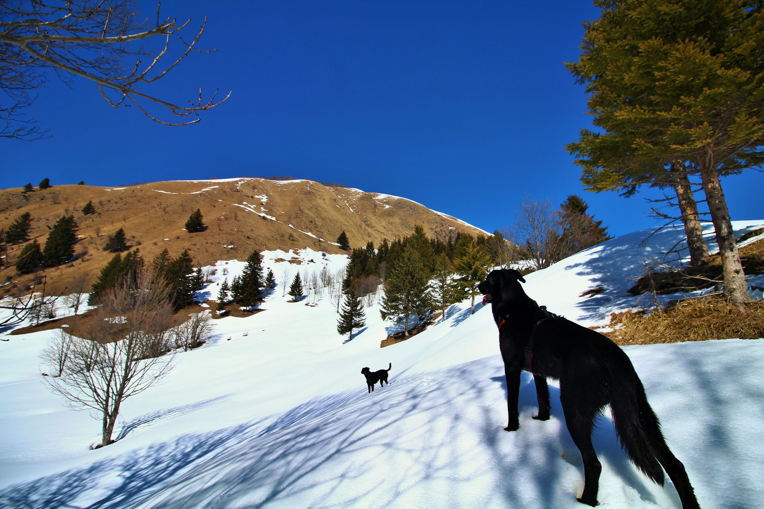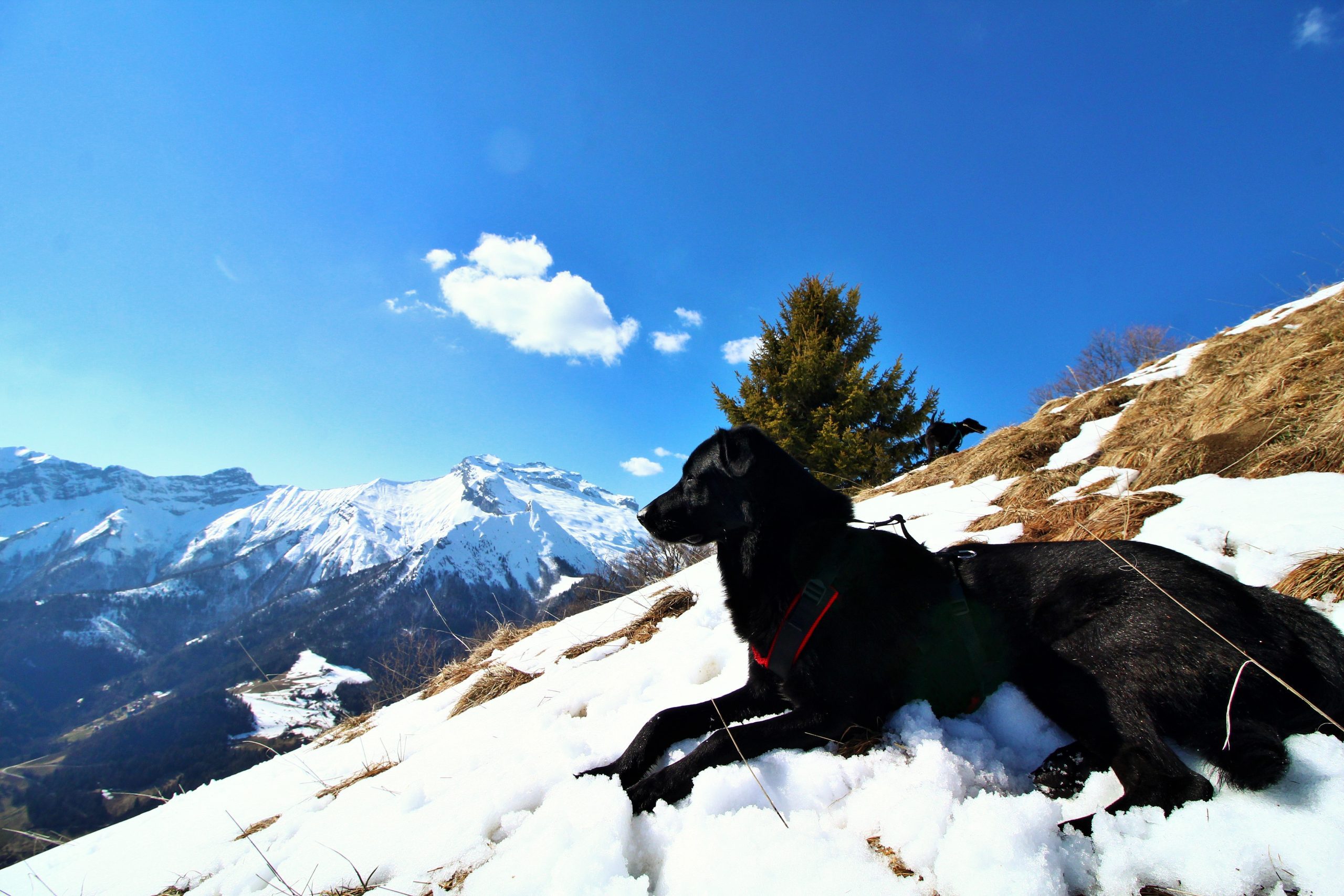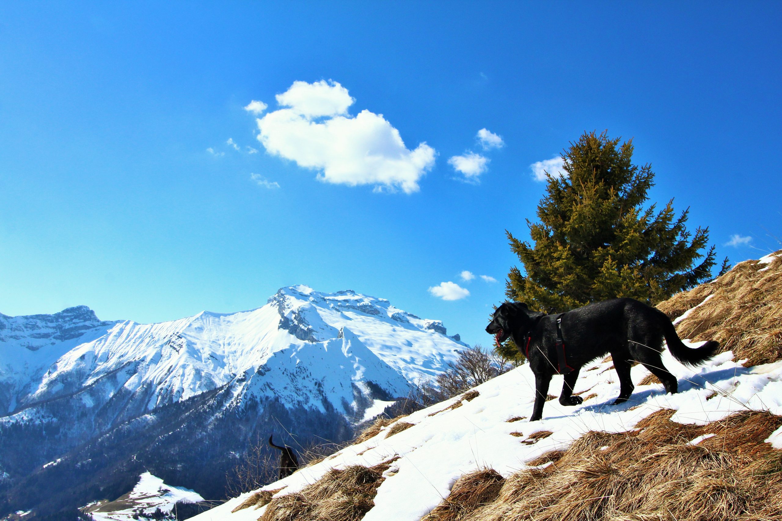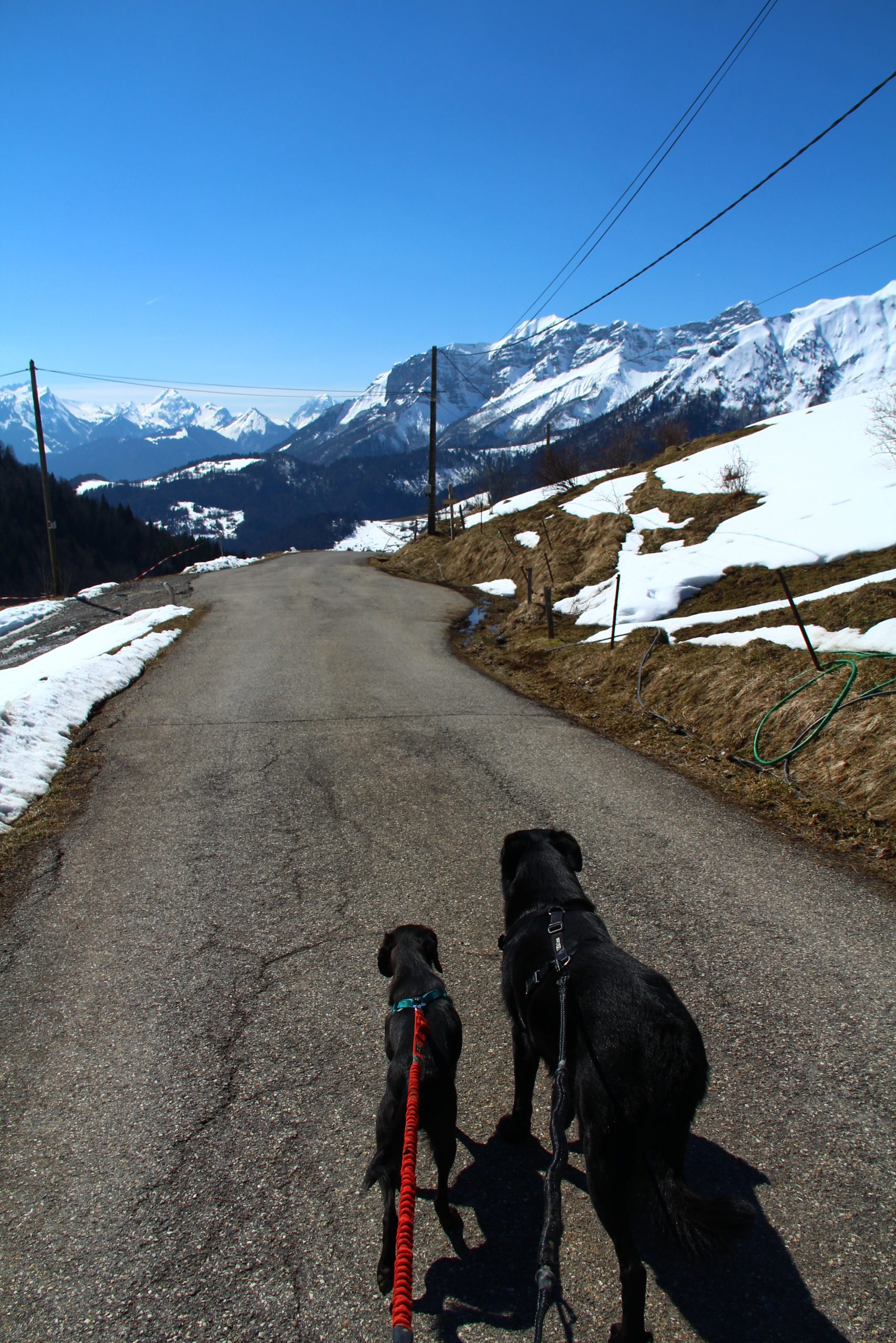 Arrivé au parking des Sambuis, je vois des personnes partir avec un chien, je vais donc devoir surveiller qu’Iron et Lucky ne partent pas trop en avant.