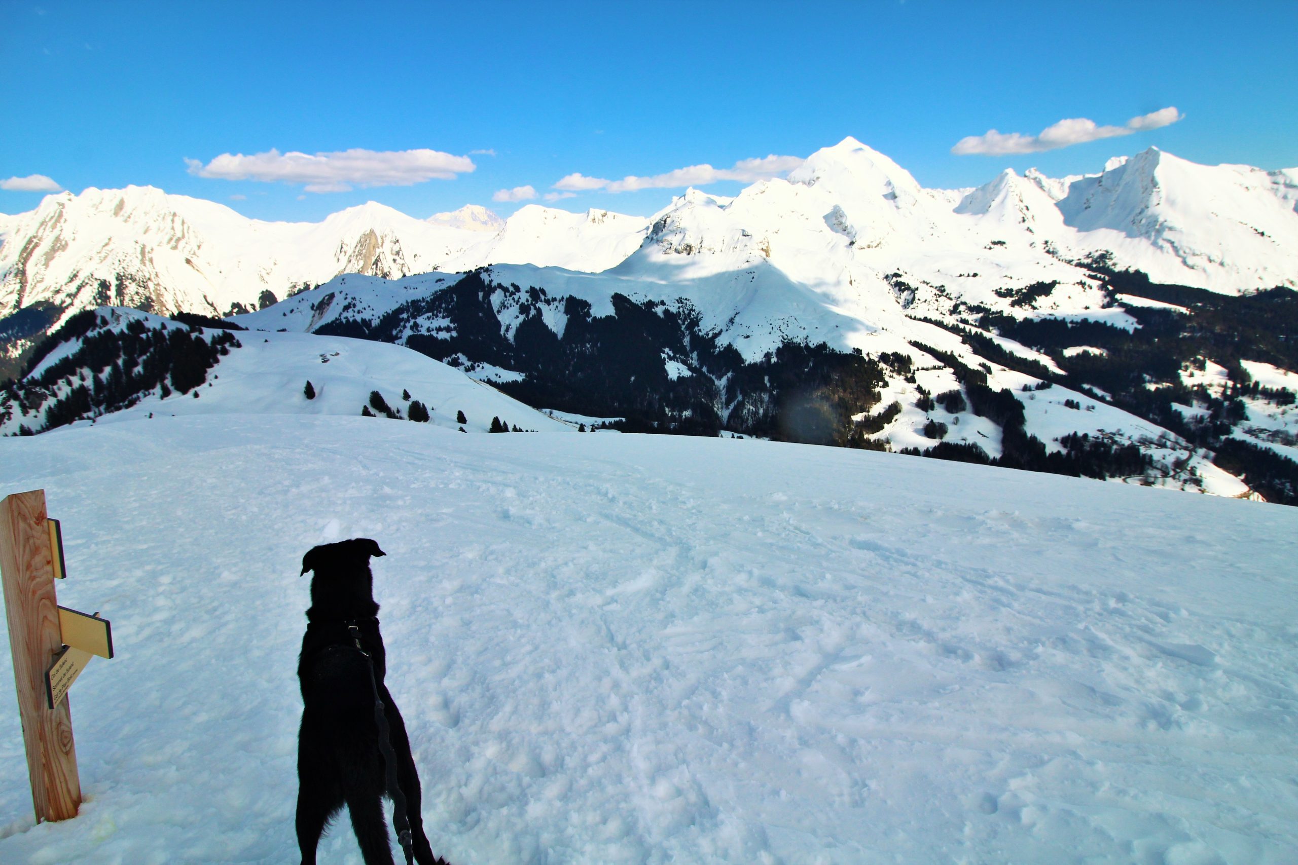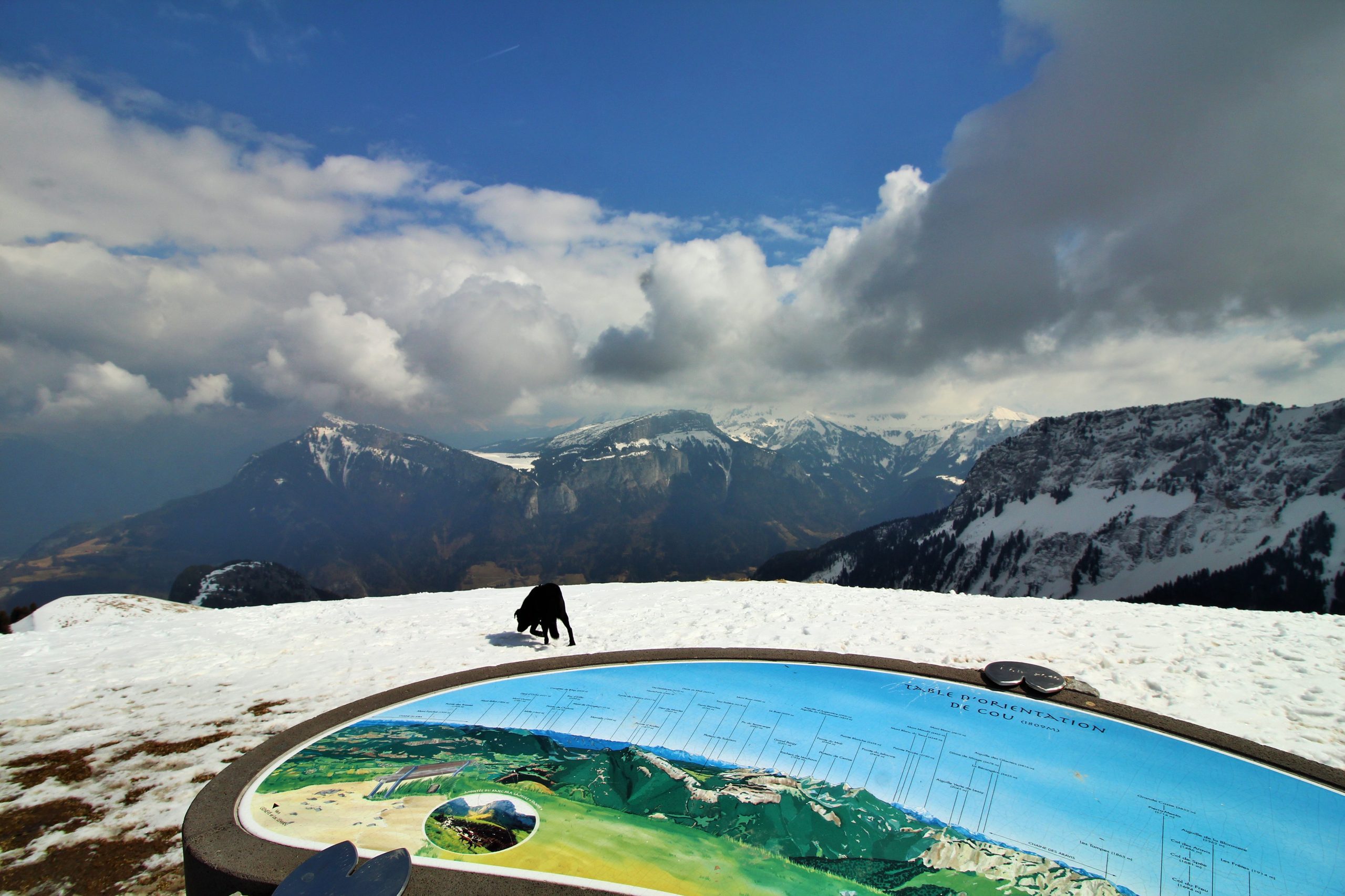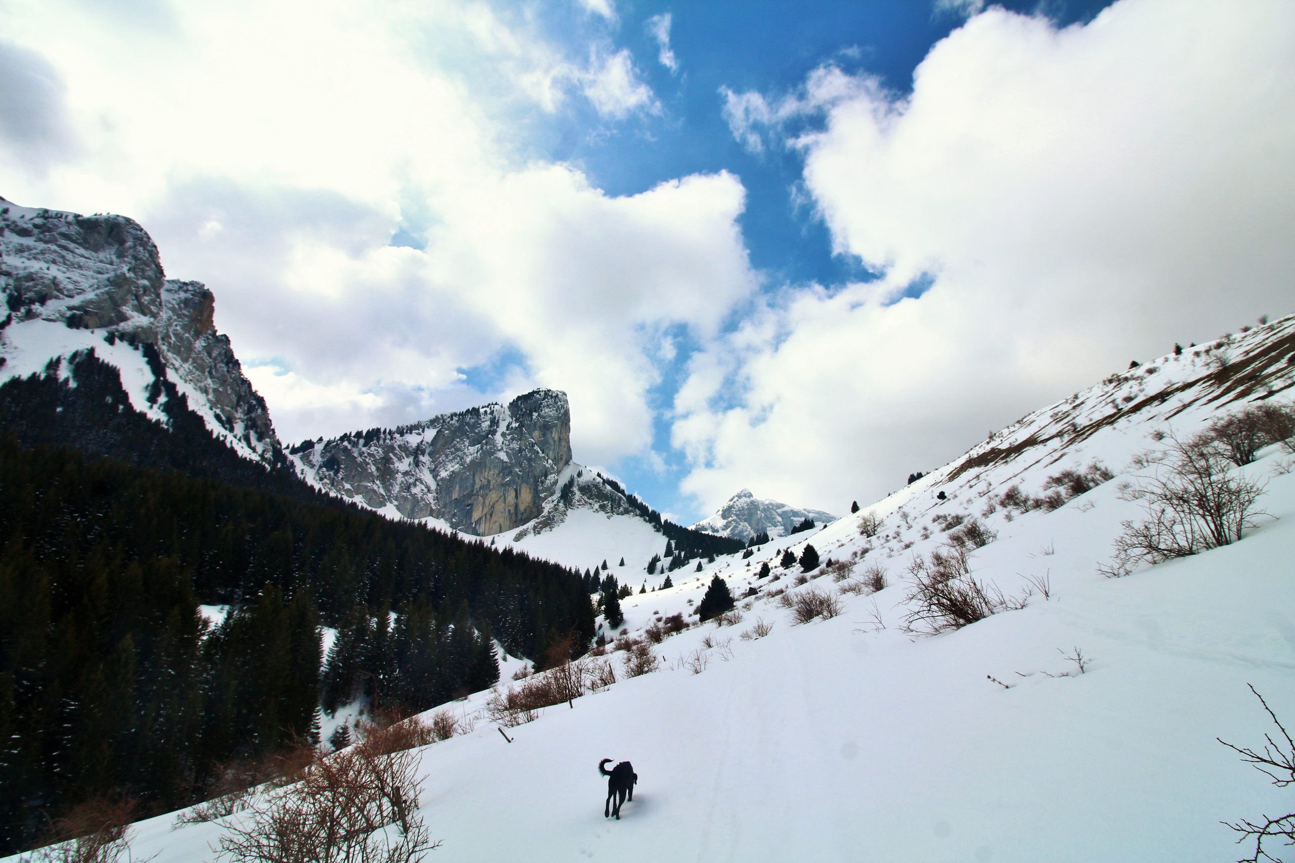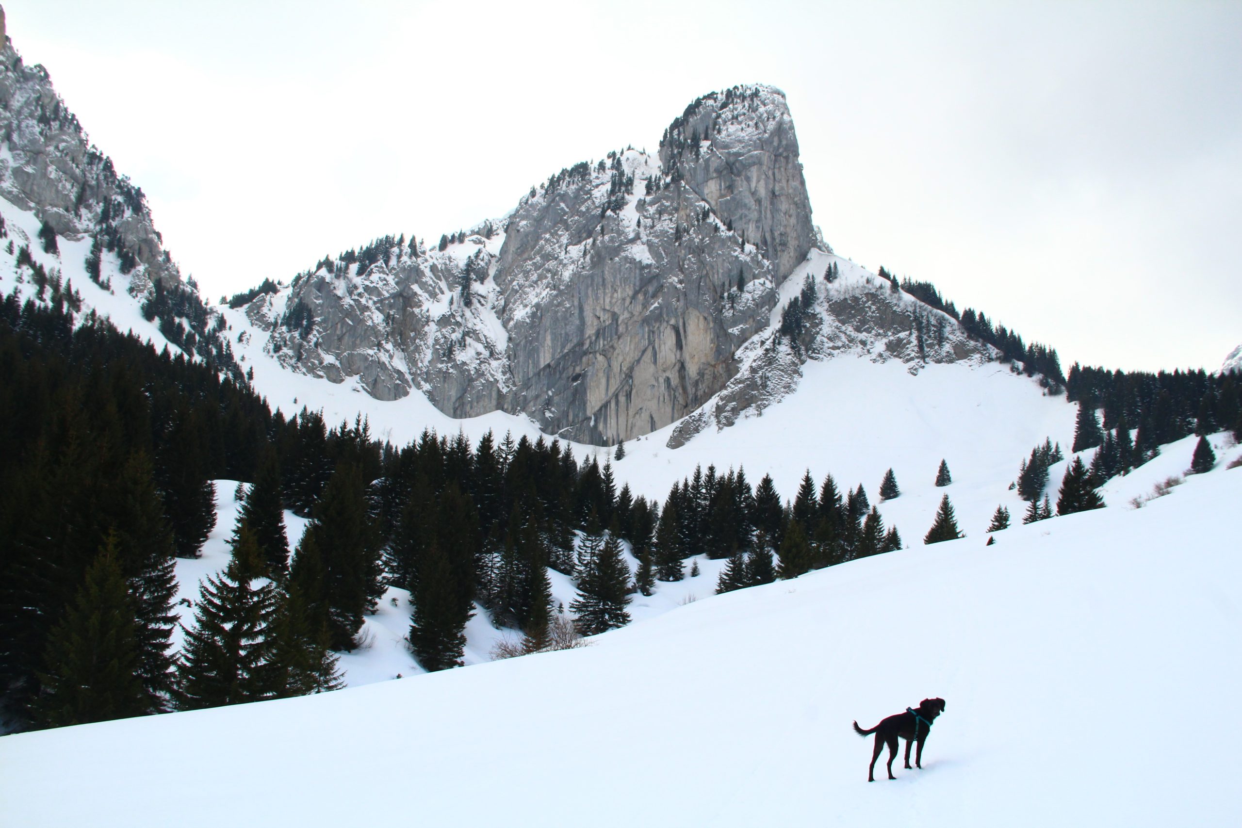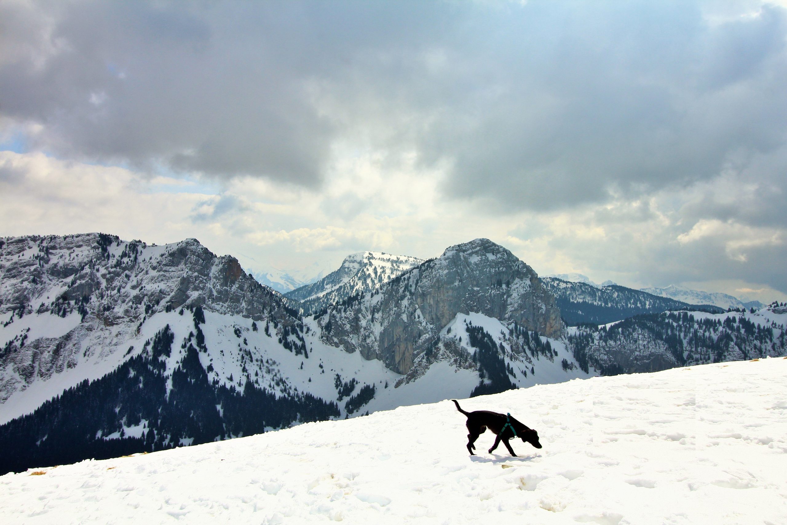 J’ai très envie d’aller faire la pointe de Sur Cou depuis le temps qu’elle me fait de l’œil, mais vu l’altitude au cours de l’itinéraire, je sais qu’une partie de la rando se fera sans neige… De plus, il me faut un endroit vraiment fréquenté pour que Lucky Luke s’habitue aux humains avant qu’il soit adopté. La montagne de Sulens est une destination parfaite pour avoir de la neige et du monde.