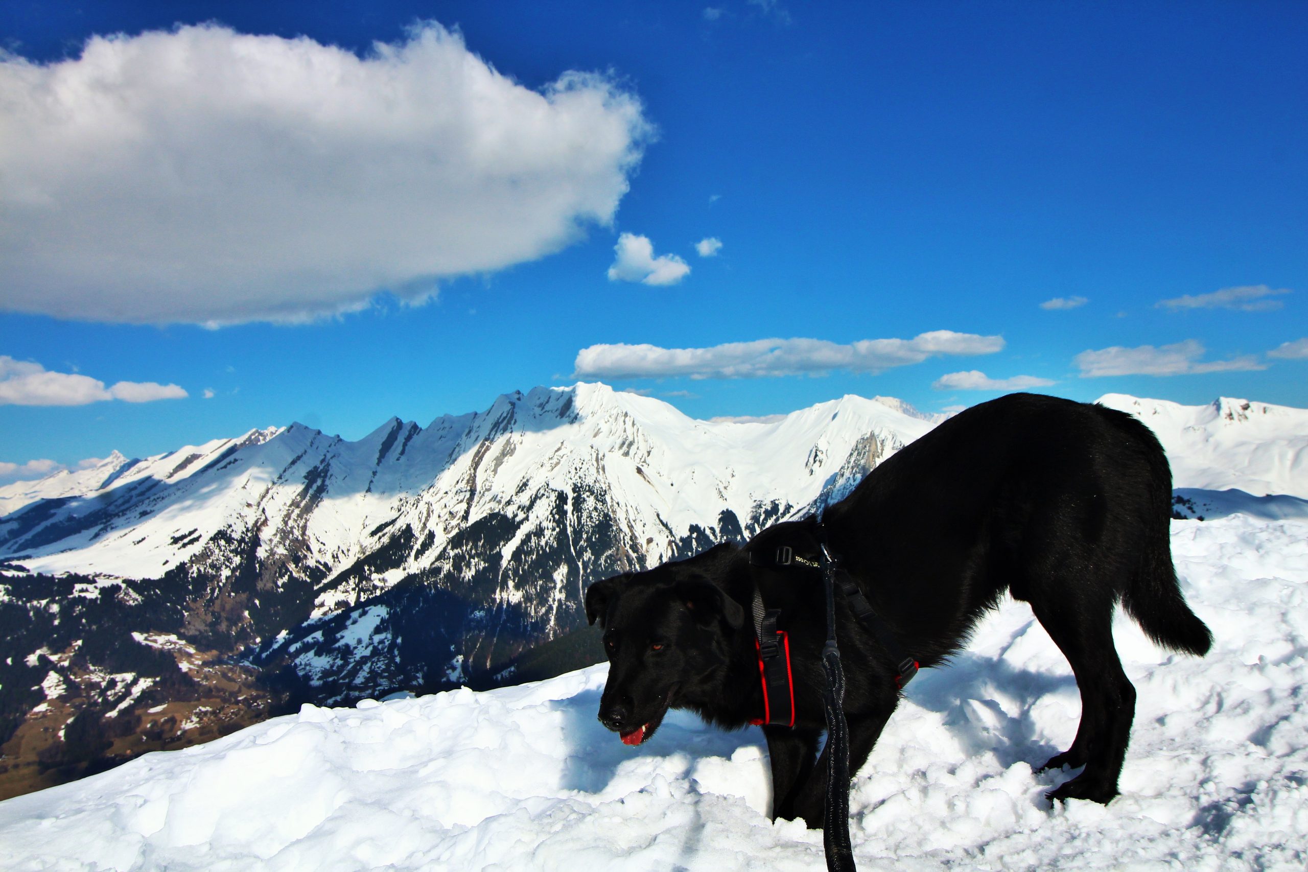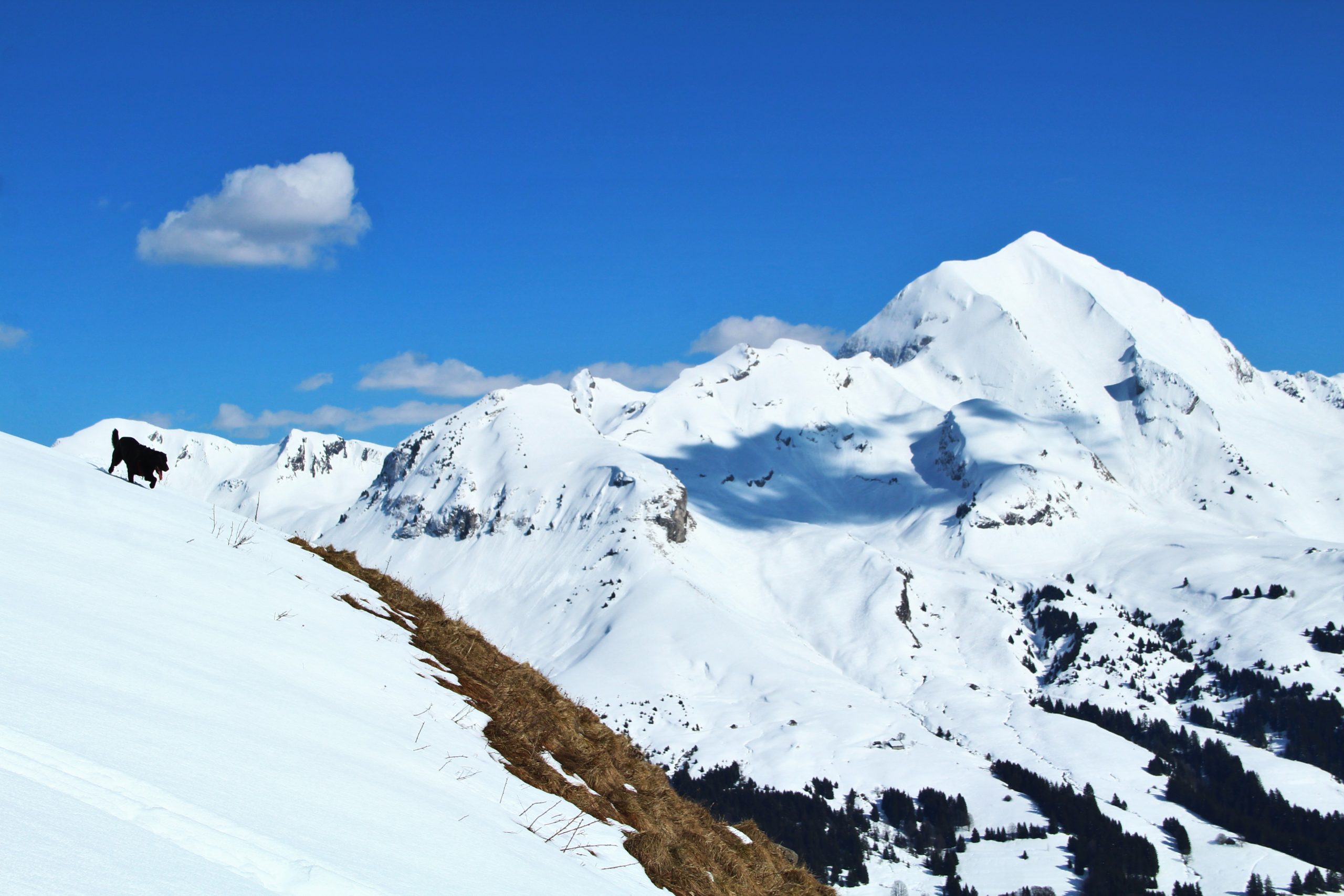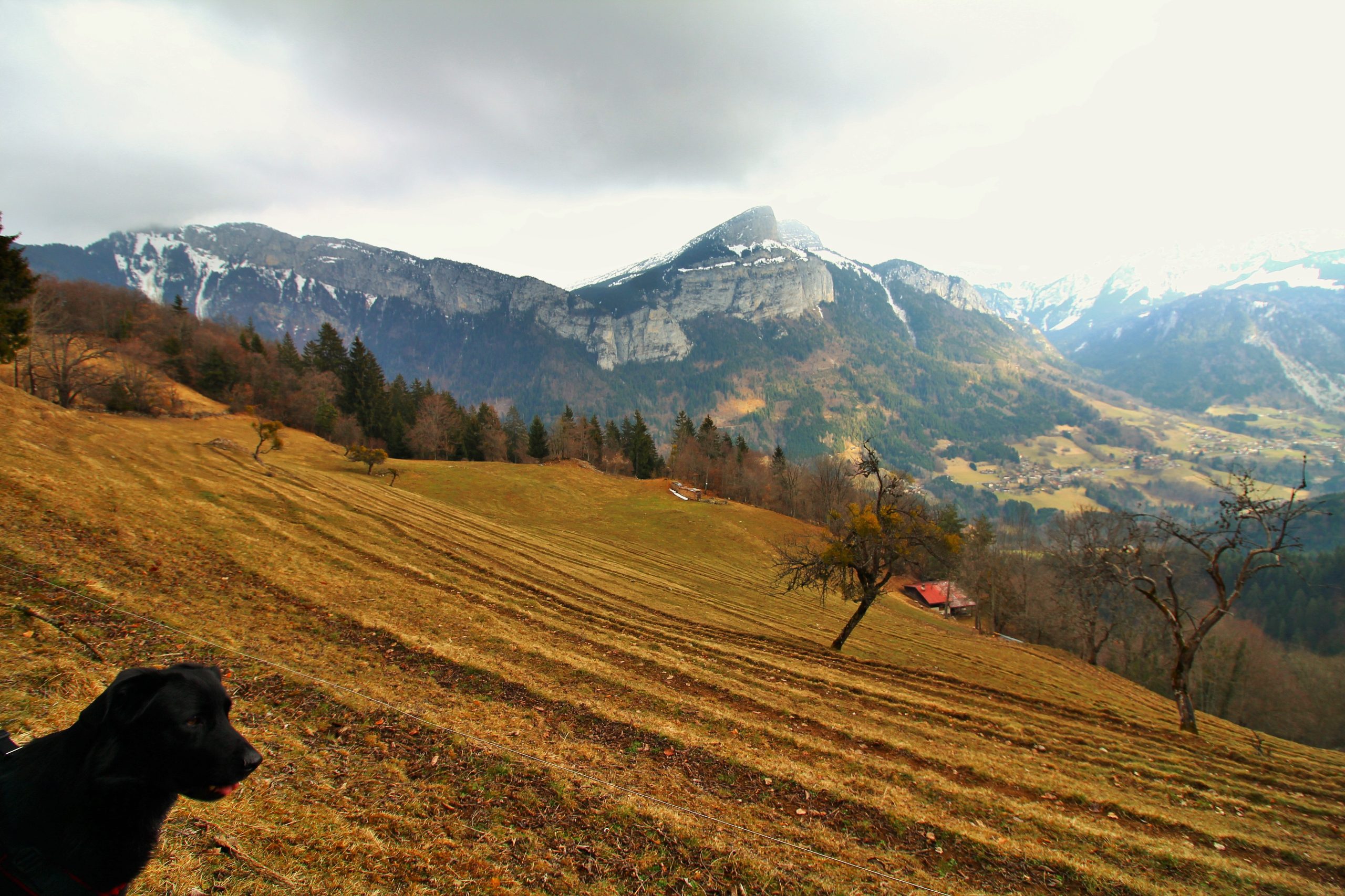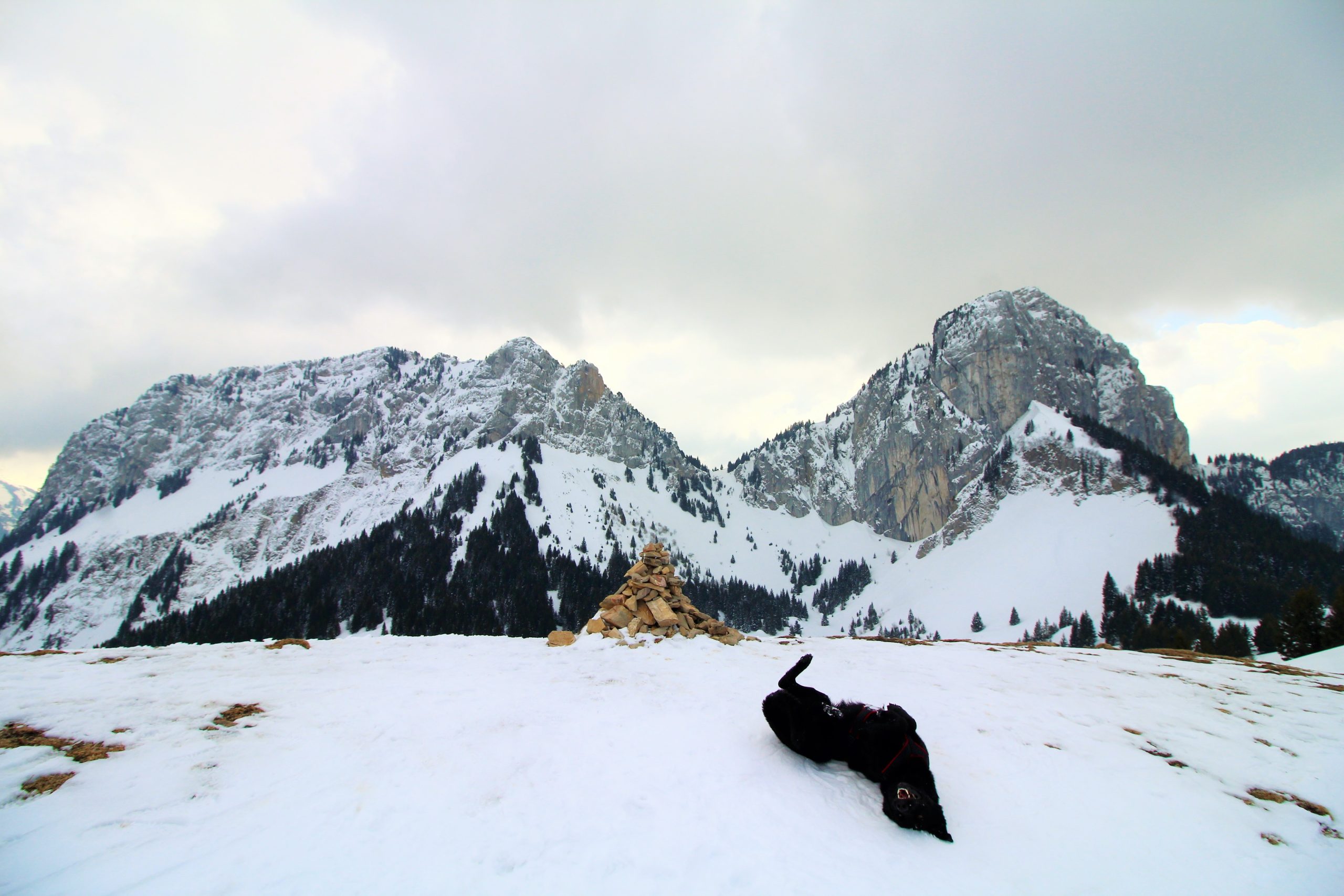 J’ai très envie d’aller faire la pointe de Sur Cou depuis le temps qu’elle me fait de l’œil, mais vu l’altitude au cours de l’itinéraire, je sais qu’une partie de la rando se fera sans neige… De plus, il me faut un endroit vraiment fréquenté pour que Lucky Luke s’habitue aux humains avant qu’il soit adopté. La montagne de Sulens est une destination parfaite pour avoir de la neige et du monde.