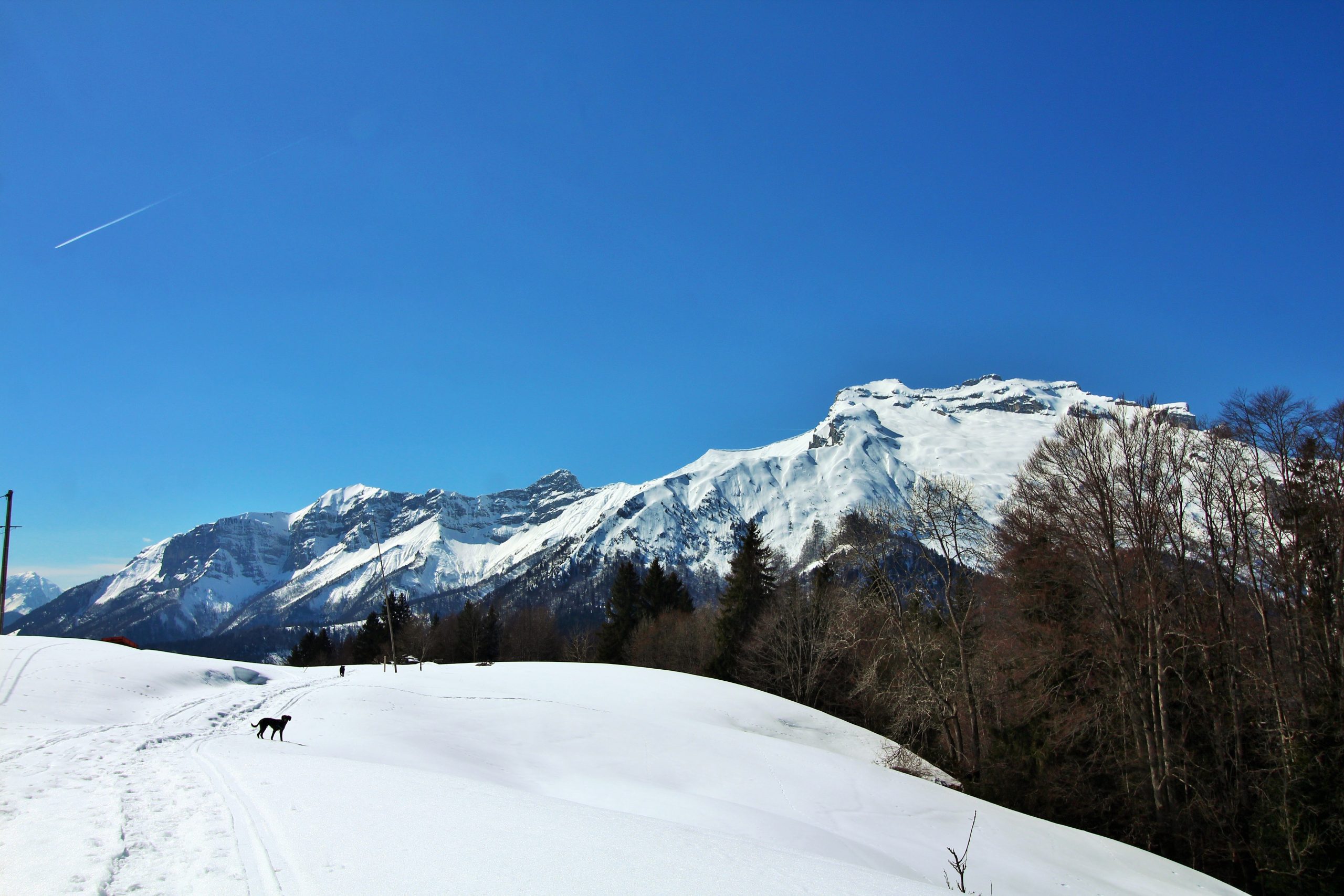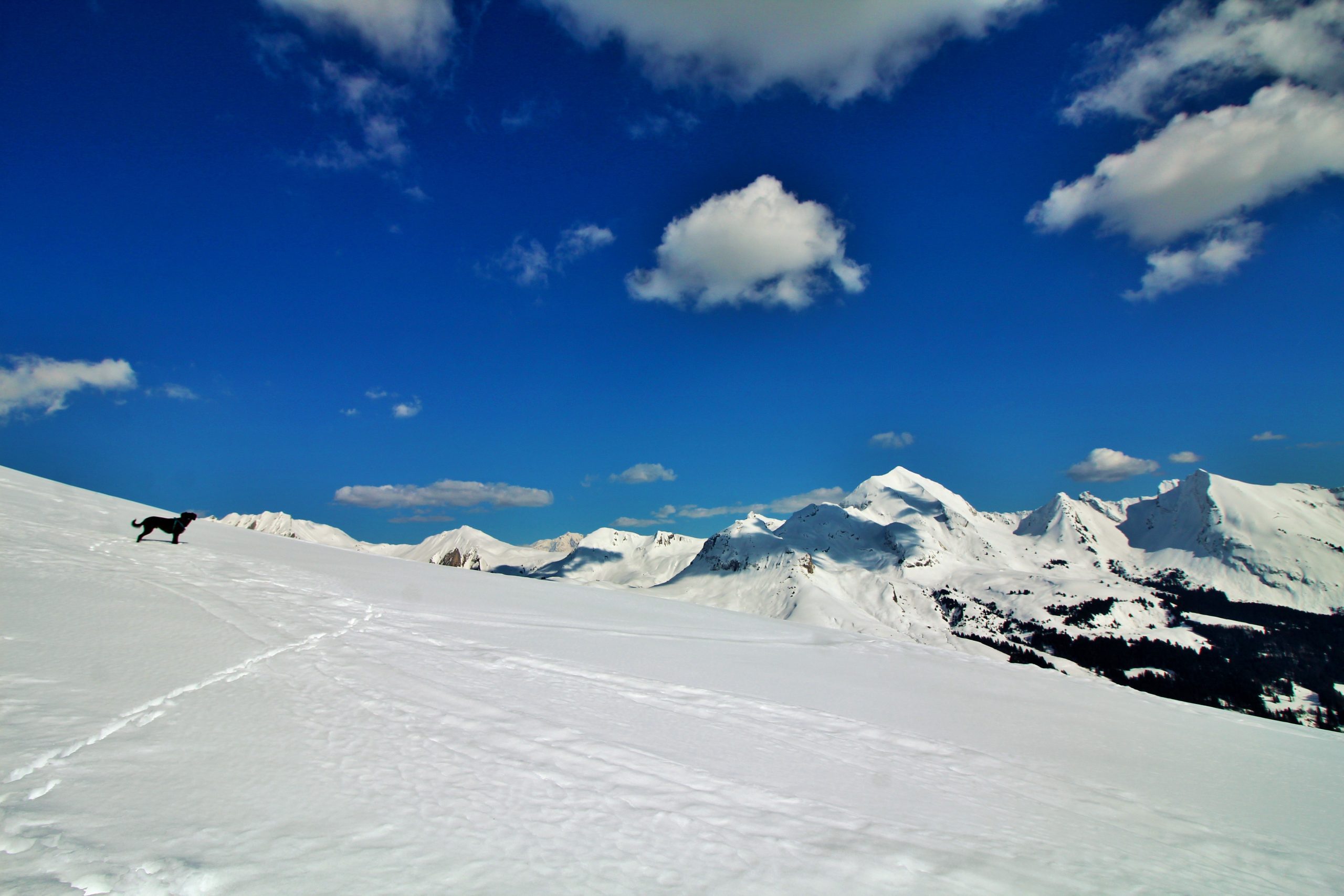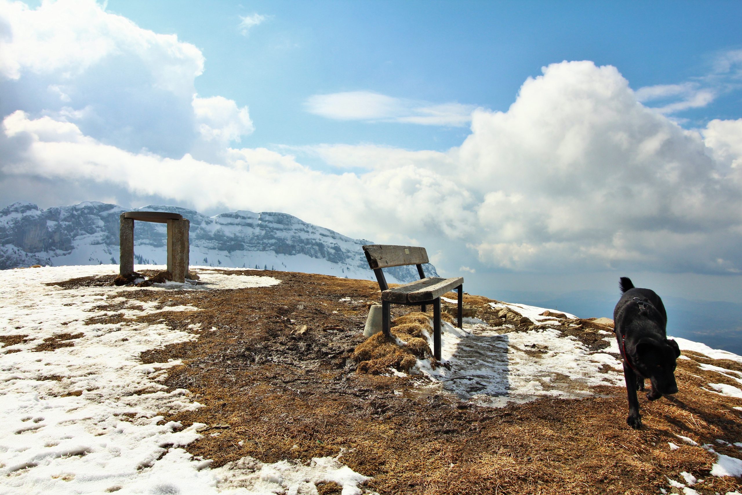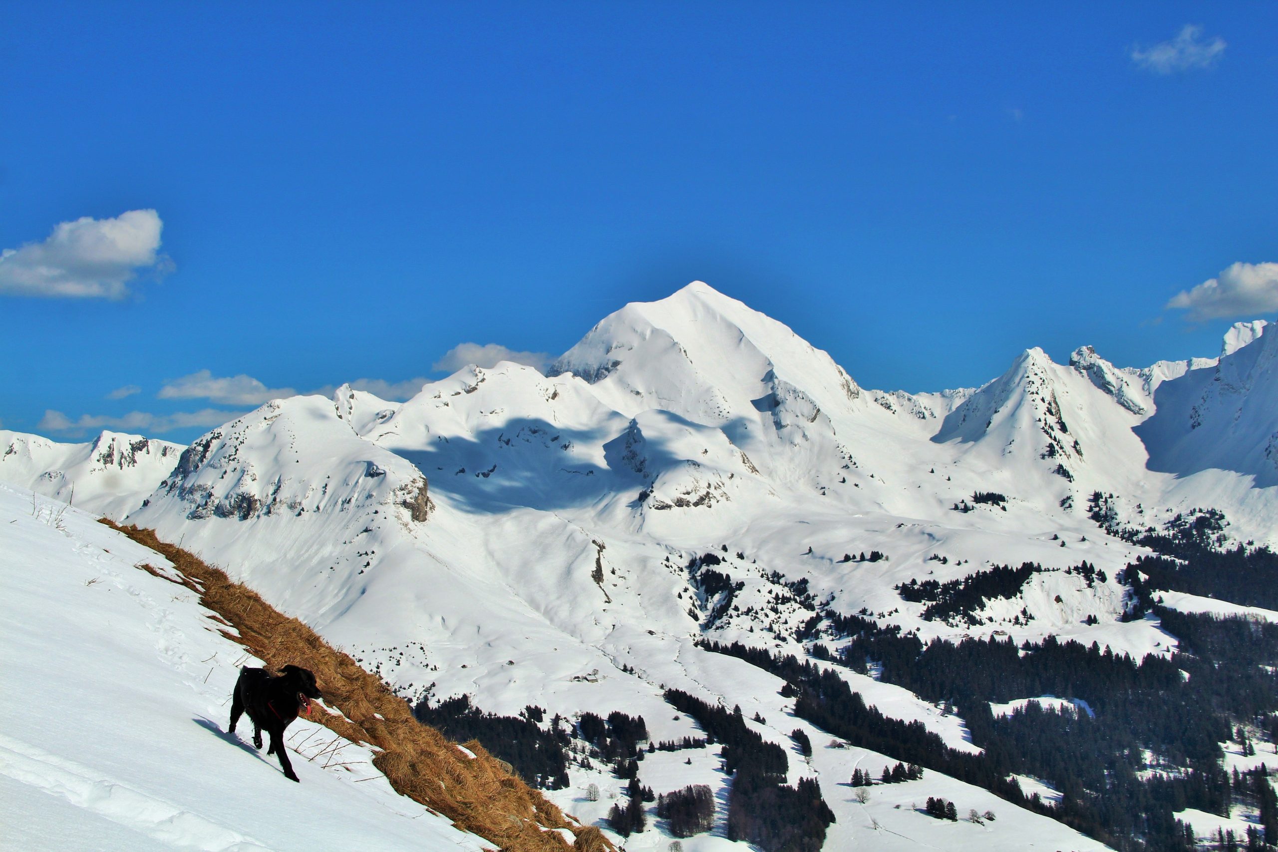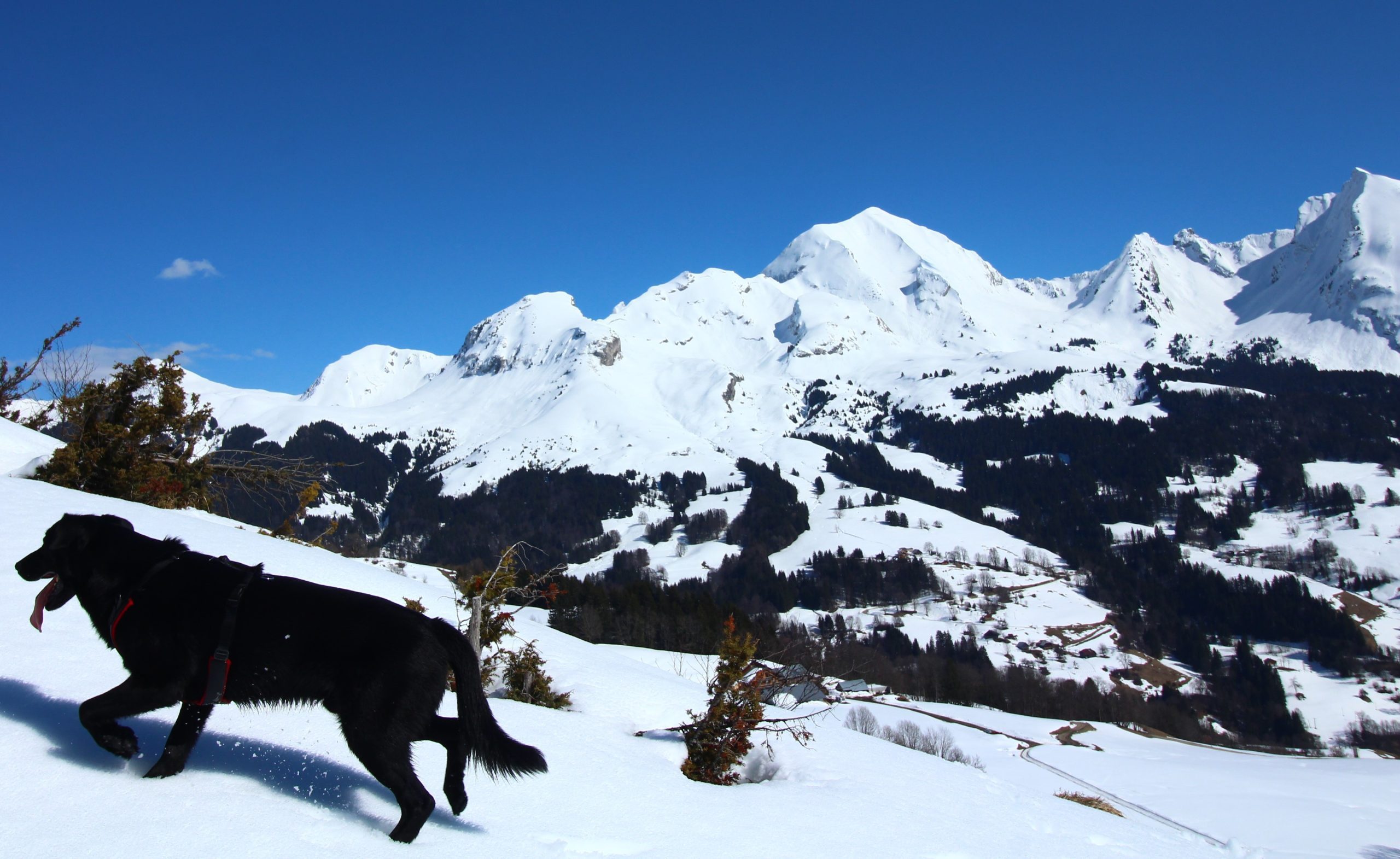 J’ai très envie d’aller faire la pointe de Sur Cou depuis le temps qu’elle me fait de l’œil, mais vu l’altitude au cours de l’itinéraire, je sais qu’une partie de la rando se fera sans neige… De plus, il me faut un endroit vraiment fréquenté pour que Lucky Luke s’habitue aux humains avant qu’il soit adopté. La montagne de Sulens est une destination parfaite pour avoir de la neige et du monde.