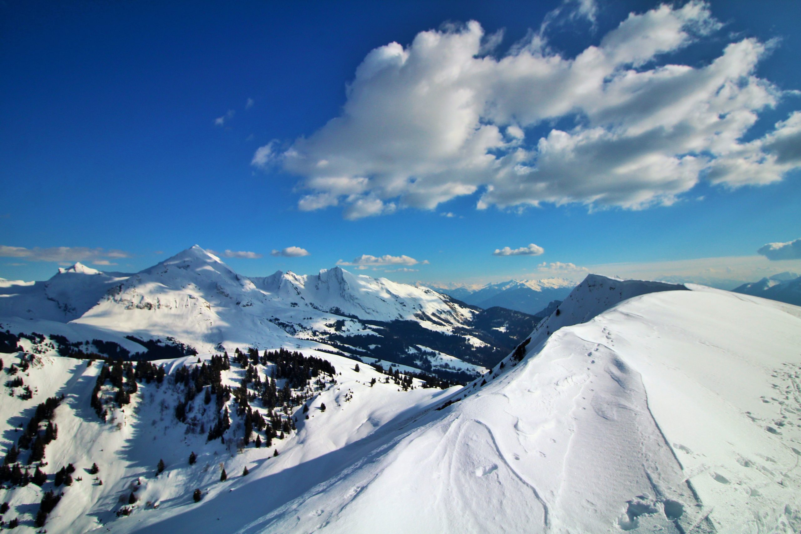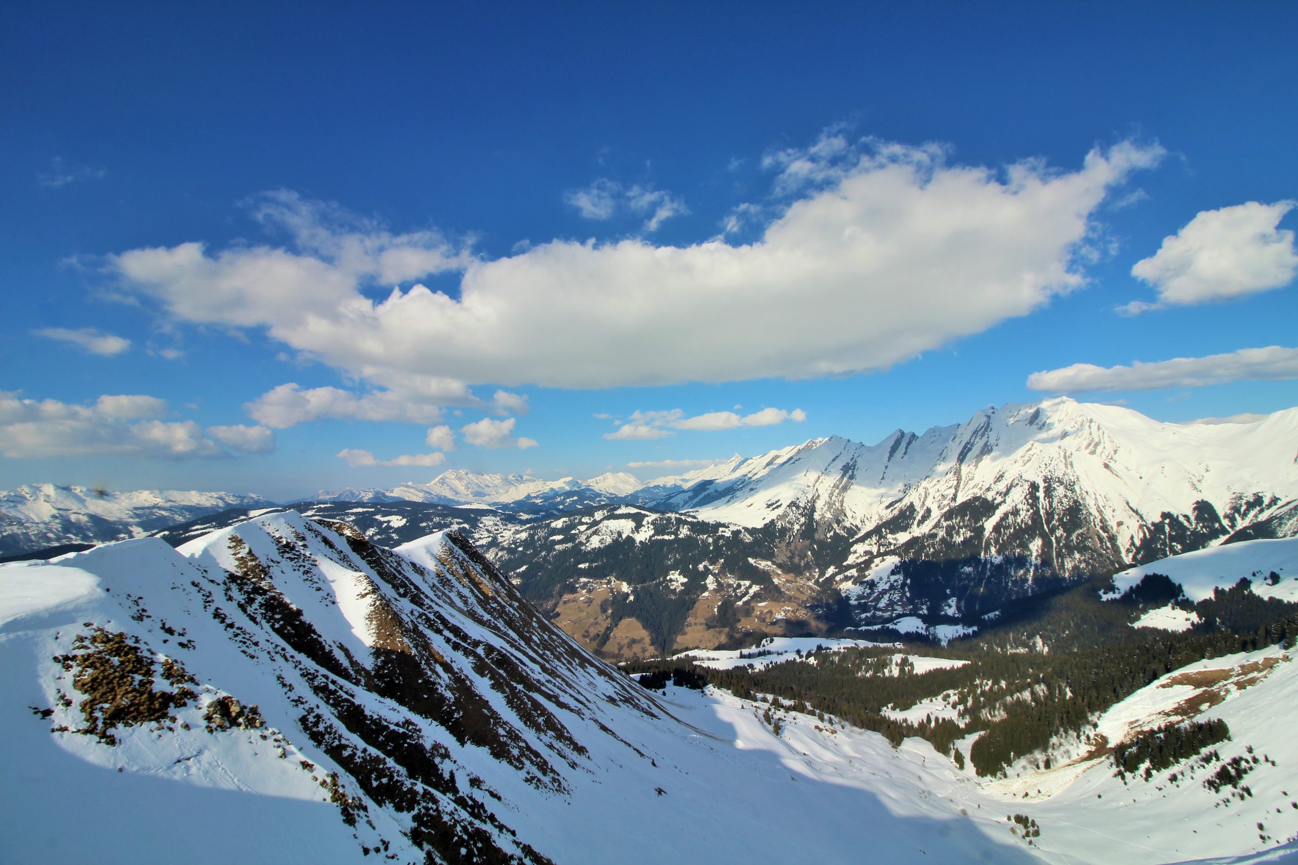 La montée à la pointe n’est que partiellement enneigée, voir très peu enneigée… La vue à la pointe en vaut vraiment la peine, malgré les nuages de cette journée on peut facilement (ou pas) imaginer le panorama.