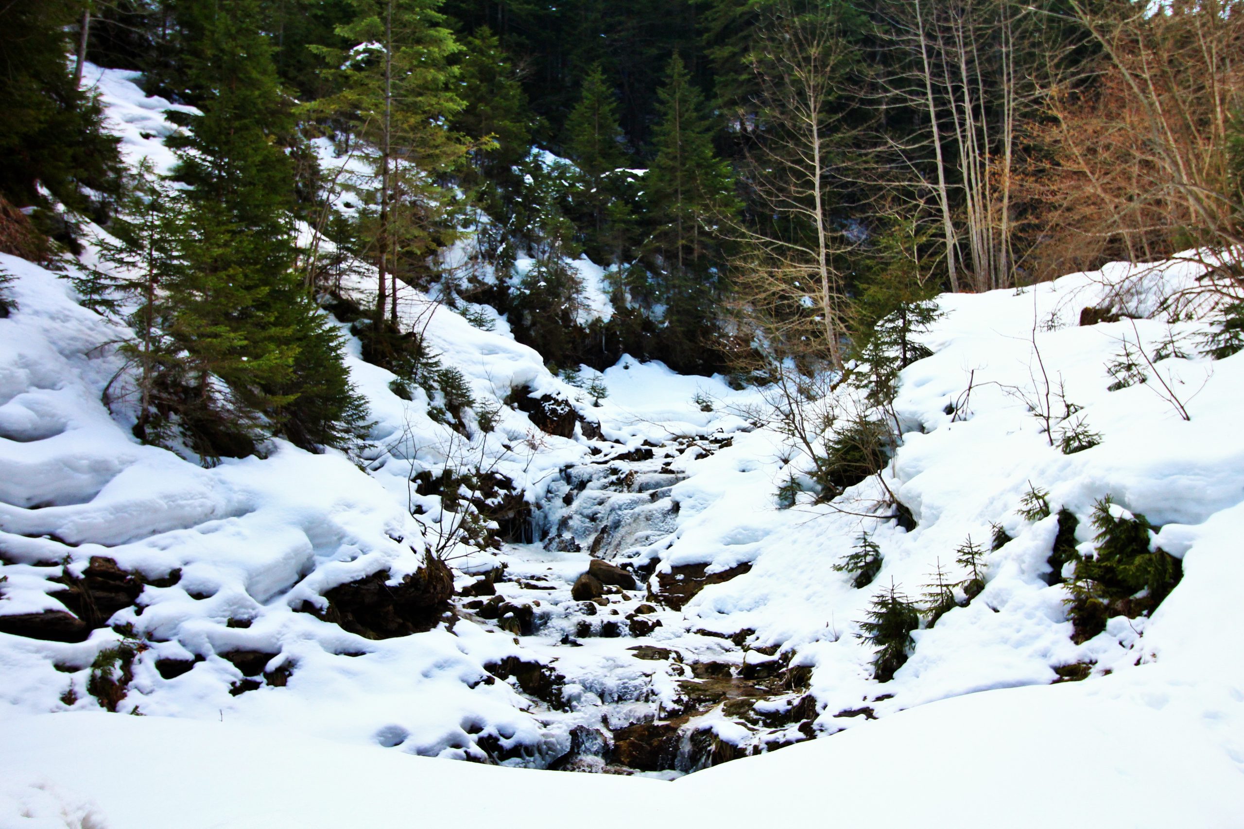 Je choisi de faire le parcours en sens inverse par rapport à l’itinéraire de cet été. On longe la route direction la Frasse. Puis bien entendu on prend la direction du Sulens, les raquettes deviennent vite nécessaires.