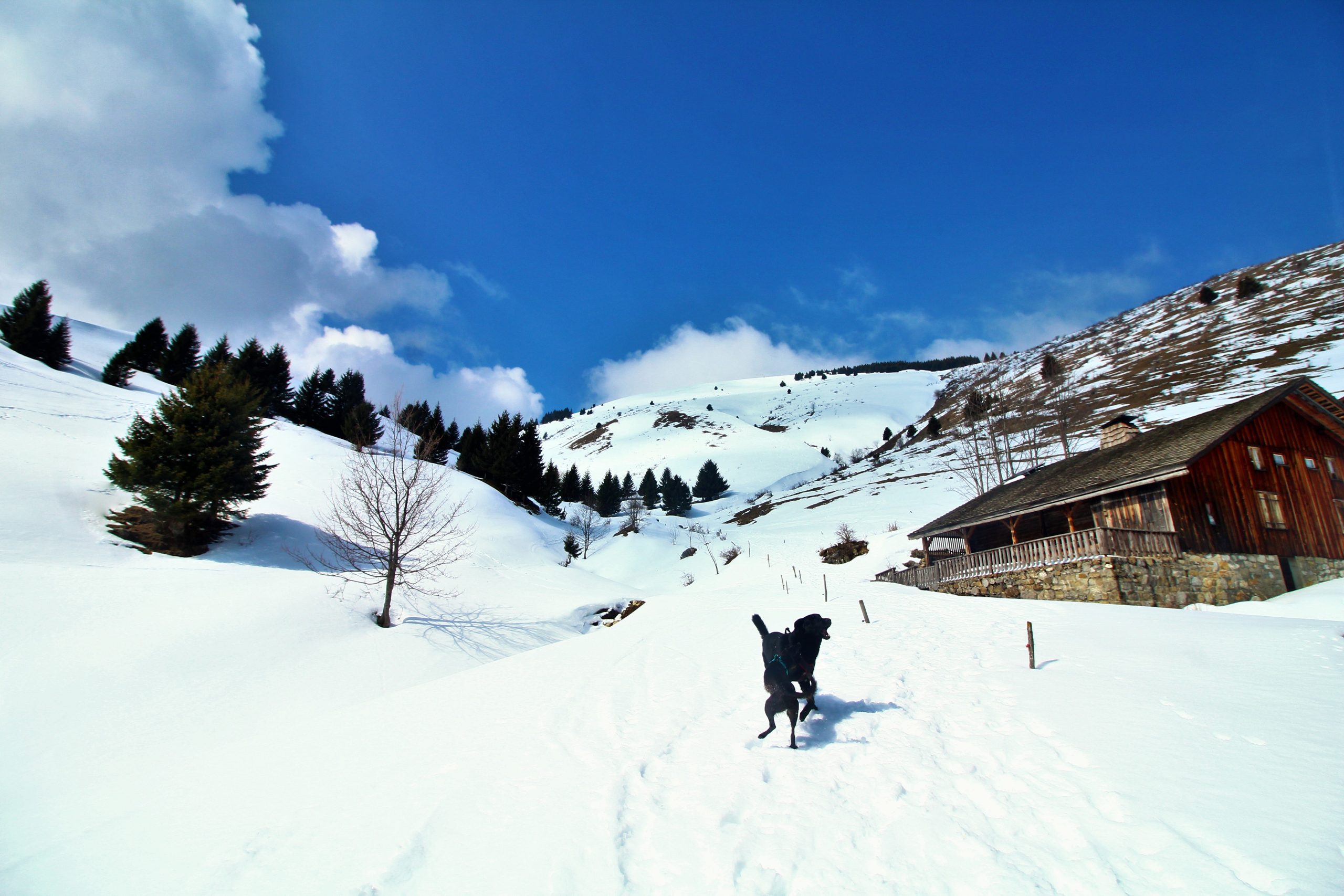 Avec les toutous, on saute dans l’auto. A ce moment là, je ne suis pas seule dans ma tête (on est au moins 15), je crie, je trépigne sur mon siège tellement contente de retrouver la neige et la montagne ! A vrai dire, les chiens doivent parfois en avoir marre de moi… Iron doit se dire » mais où je suis tombé … mauvaise association qui m’a confié à elle, cette fille qui me sert de maitresse est complètement barrée »